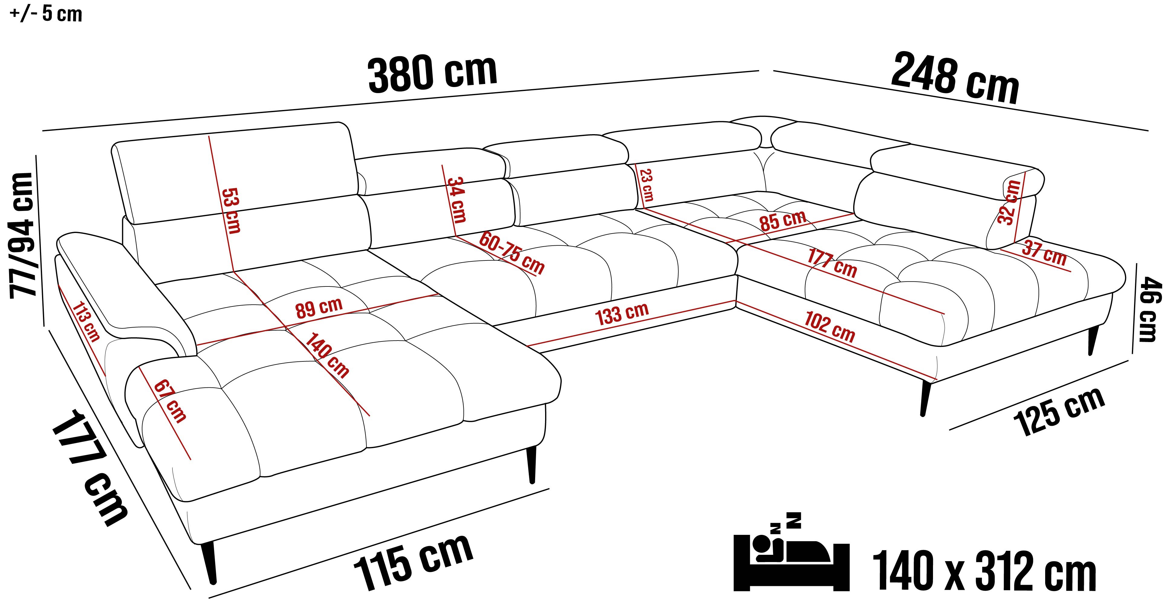Narożnik EMPOLI XL w układzie U Lewostronny z funkcją spania Lewostronny w ktaninie AUSTIN 03 WERSAL