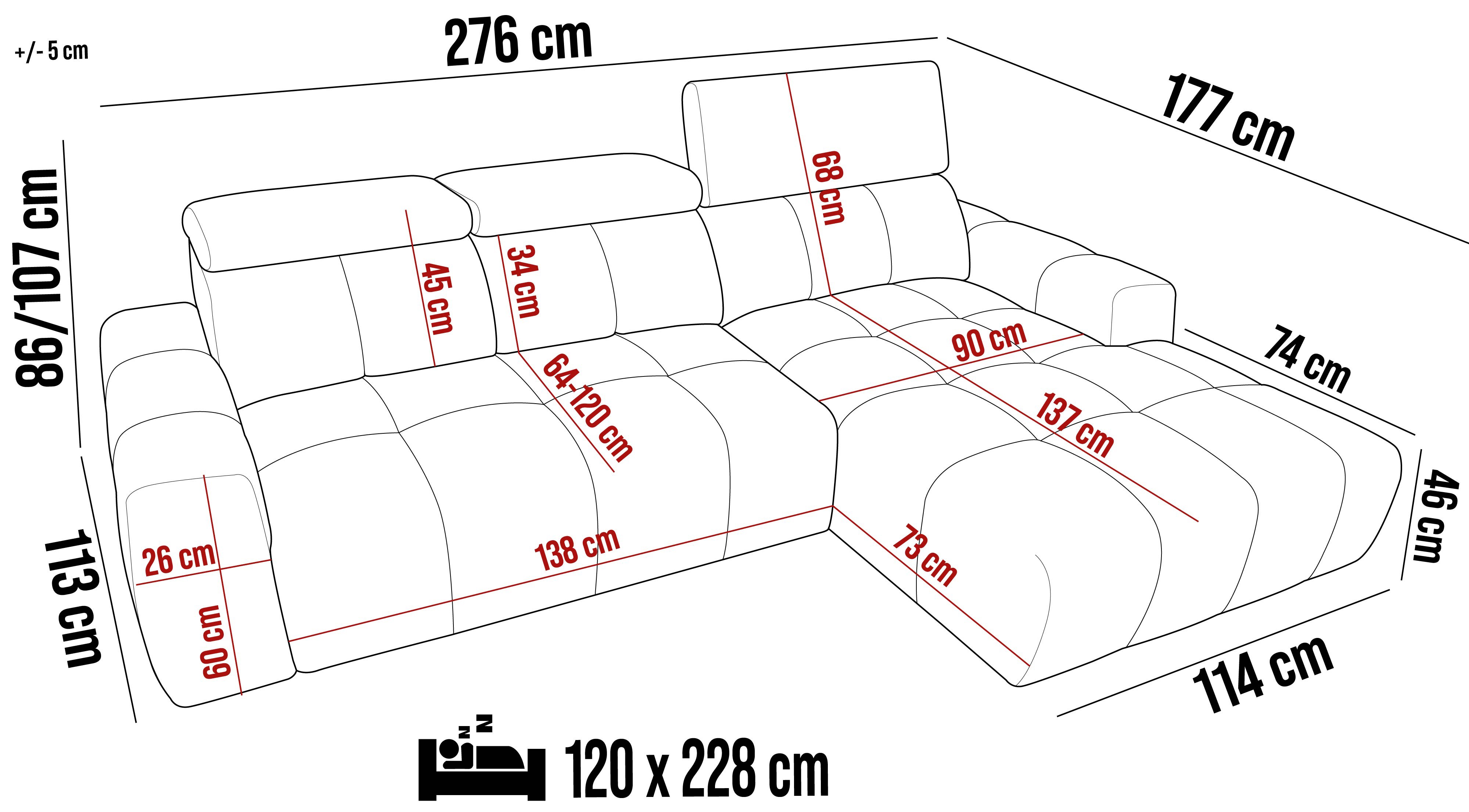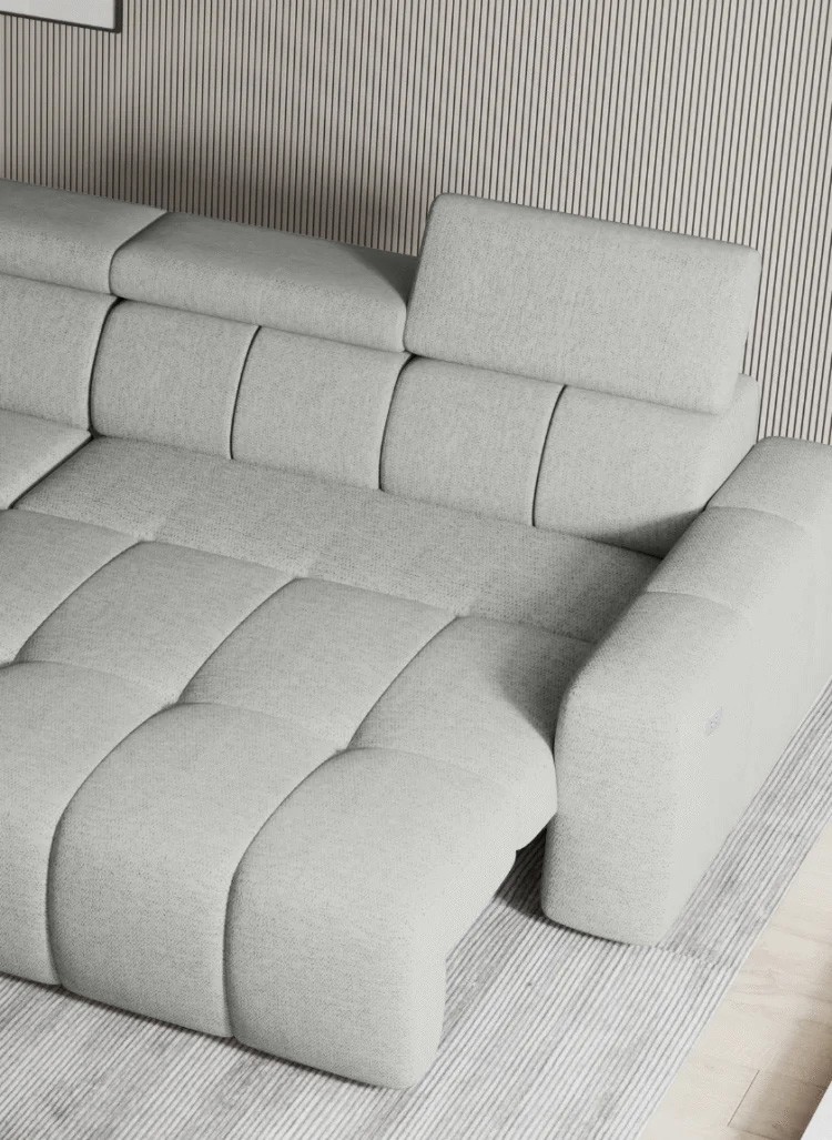 Wyposażony w elektrycznie rozkładaną funkcję spania, narożnik ENZO S umożliwia wygodny odpoczynek zarówno w ciągu dnia, jak i w nocy.