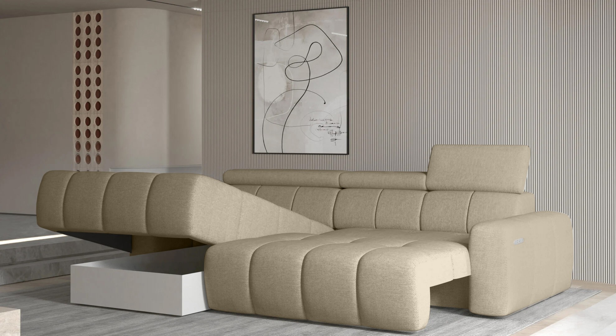 Wyposażony w elektrycznie rozkładaną funkcję spania, narożnik ENZO S umożliwia wygodny odpoczynek zarówno w ciągu dnia, jak i w nocy.