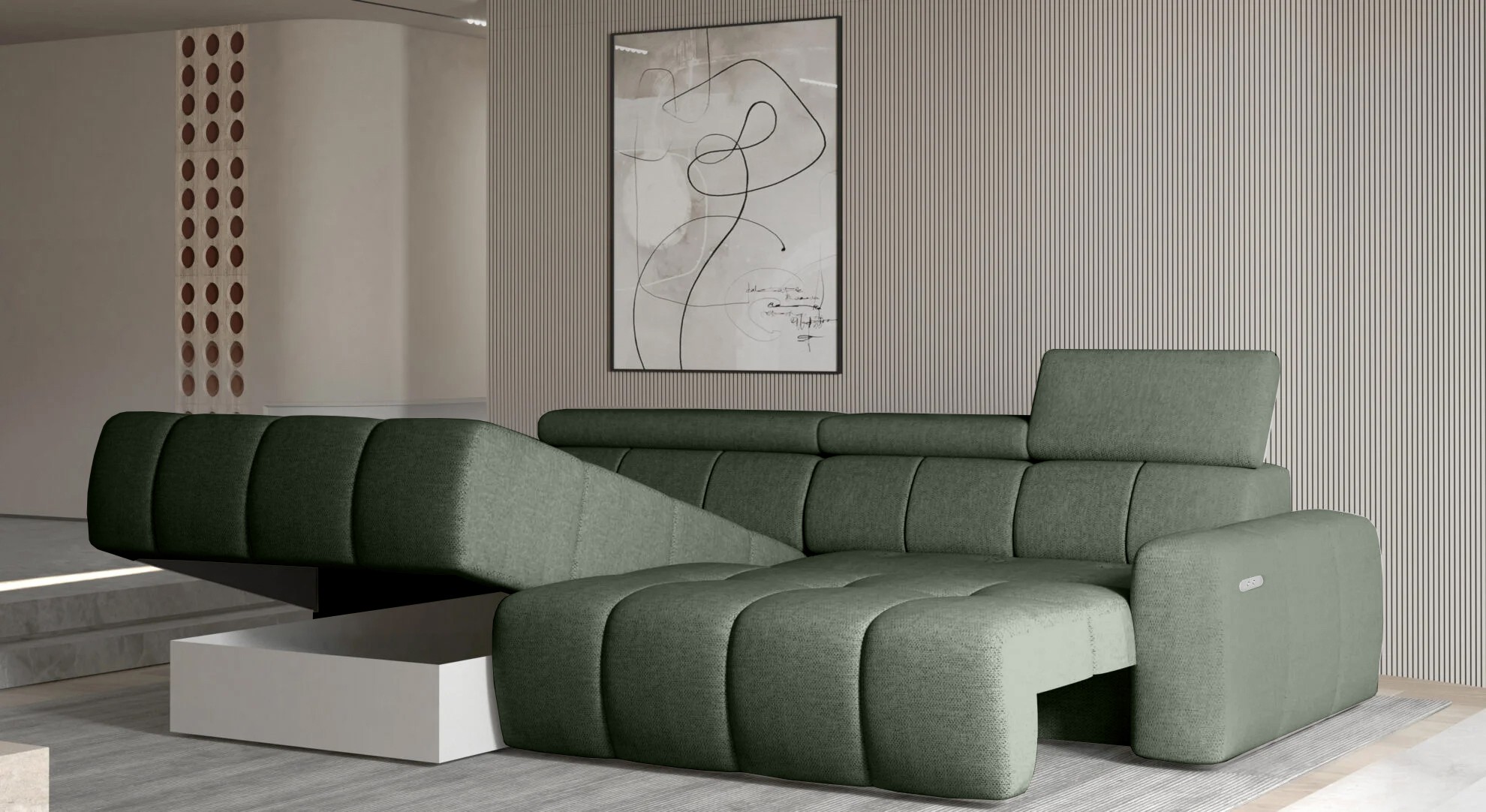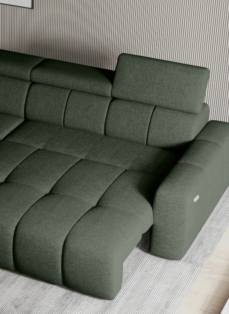 Wyposażony w elektrycznie rozkładaną funkcję spania, narożnik ENZO S umożliwia wygodny odpoczynek zarówno w ciągu dnia, jak i w nocy.