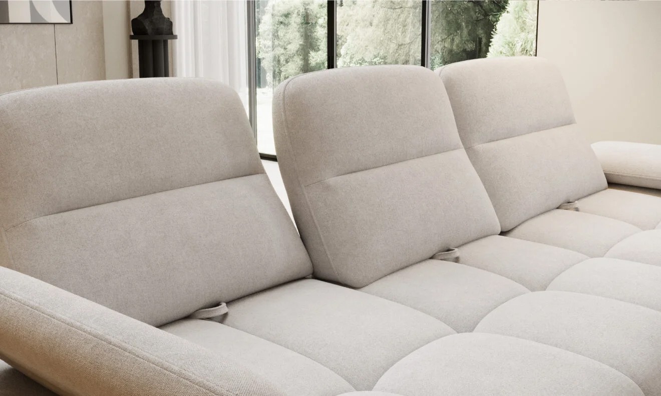 Projektanci postawili na prostotę i funkcjonalność, uzupełniając nowoczesną formę o subtelne pikowania, które nadają meblowi ponadczasowego charakteru.