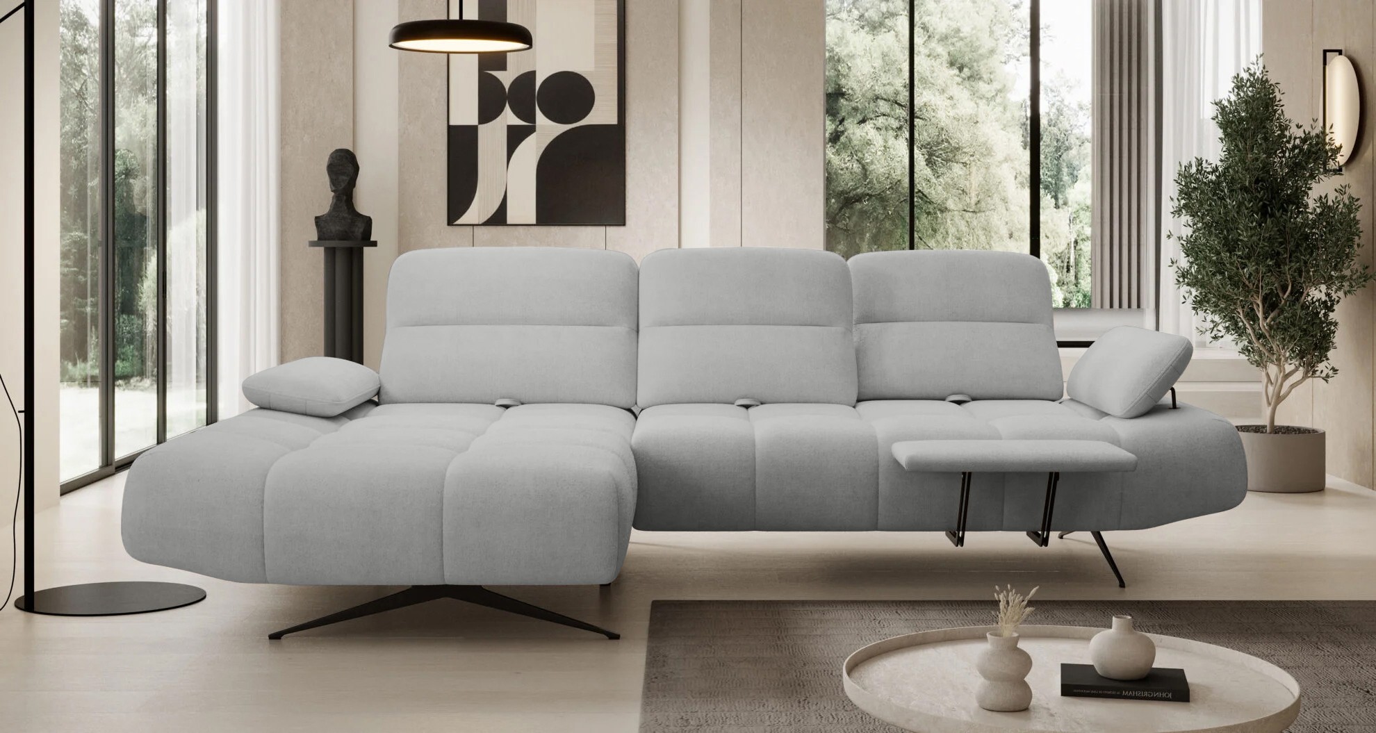 Projektanci postawili na prostotę i funkcjonalność, uzupełniając nowoczesną formę o subtelne pikowania, które nadają meblowi ponadczasowego charakteru.