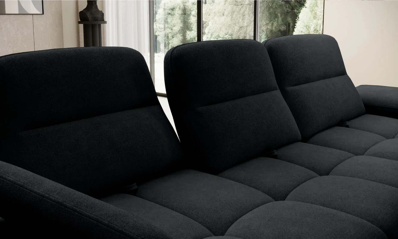Projektanci postawili na prostotę i funkcjonalność, uzupełniając nowoczesną formę o subtelne pikowania, które nadają meblowi ponadczasowego charakteru.
