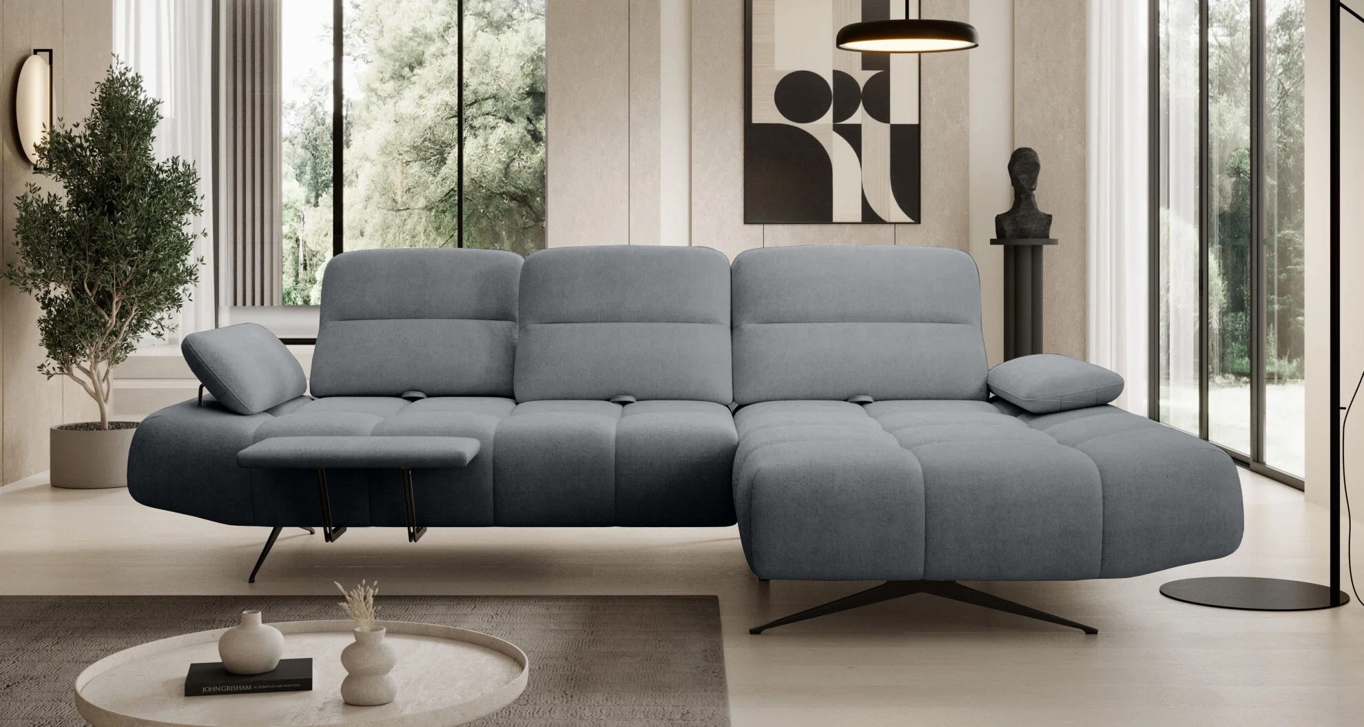 Projektanci postawili na prostotę i funkcjonalność, uzupełniając nowoczesną formę o subtelne pikowania, które nadają meblowi ponadczasowego charakteru.