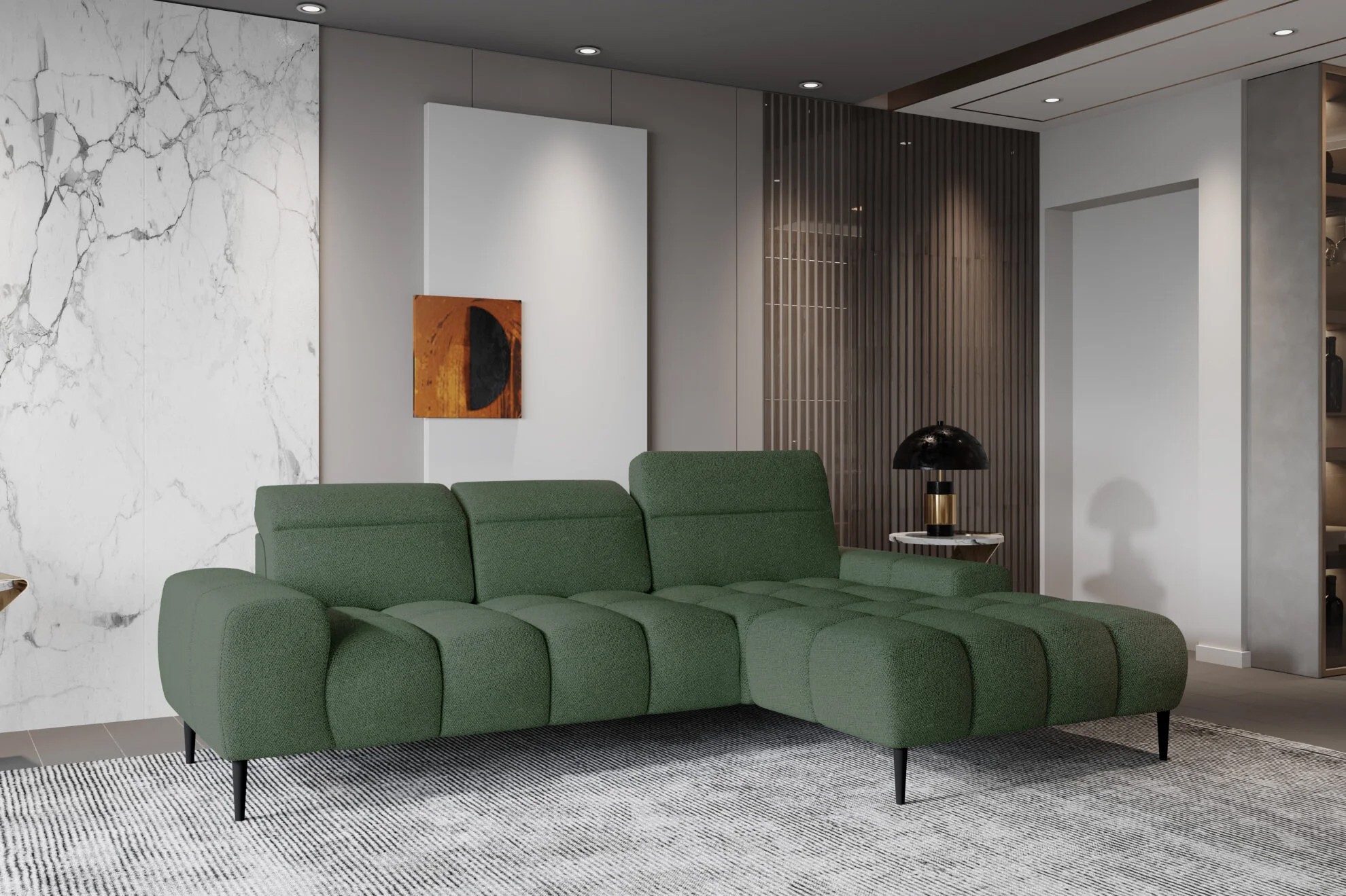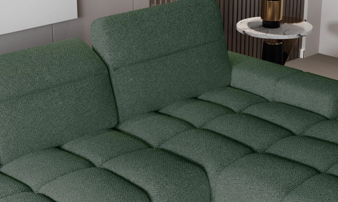 Pikowane siedzisko nadaje narożnikowi nowoczesnego charakteru, a wysokie