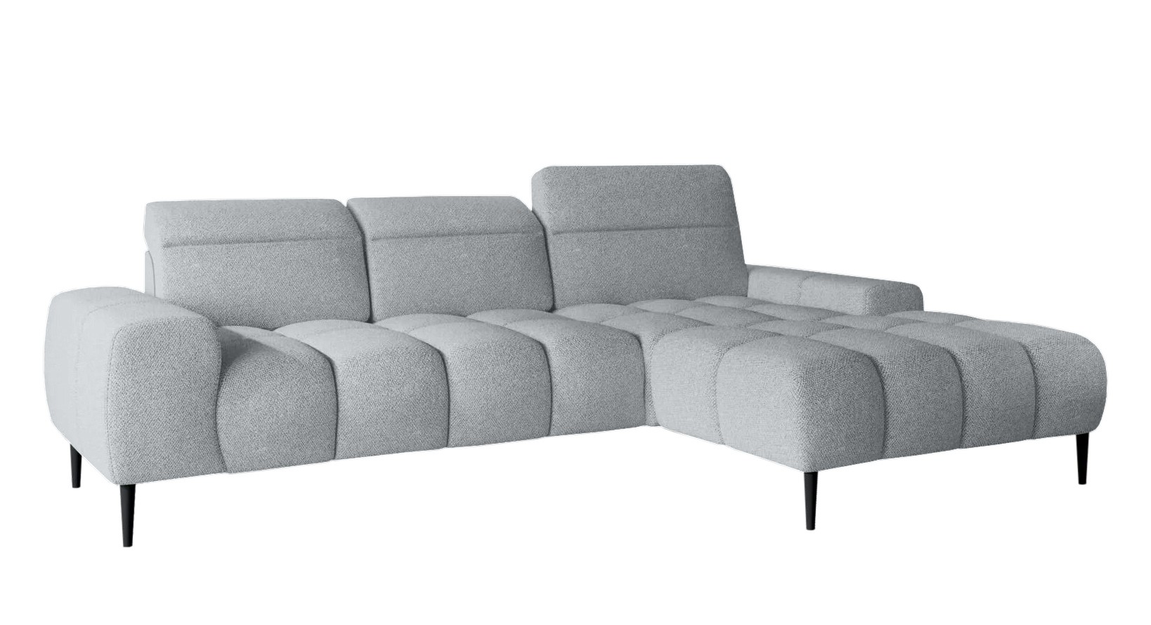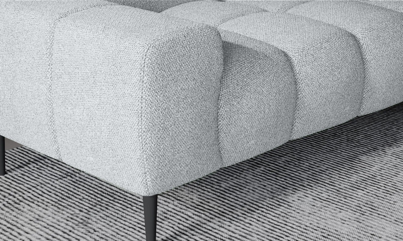 Pikowane siedzisko nadaje narożnikowi nowoczesnego charakteru, a wysokie metalowe nóżki w stylu loftowym dodają mu lekkości i elegancji.
