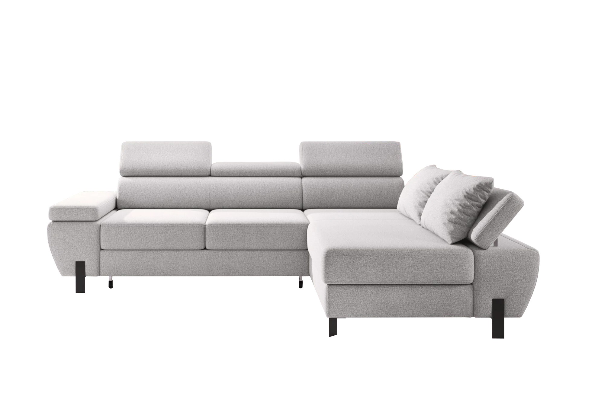 Dodatkowo narożnik wyposażony jest w regulowane zagłówki, które można zablokować w wybranej pozycji, zapewniając jeszcze większy komfort.