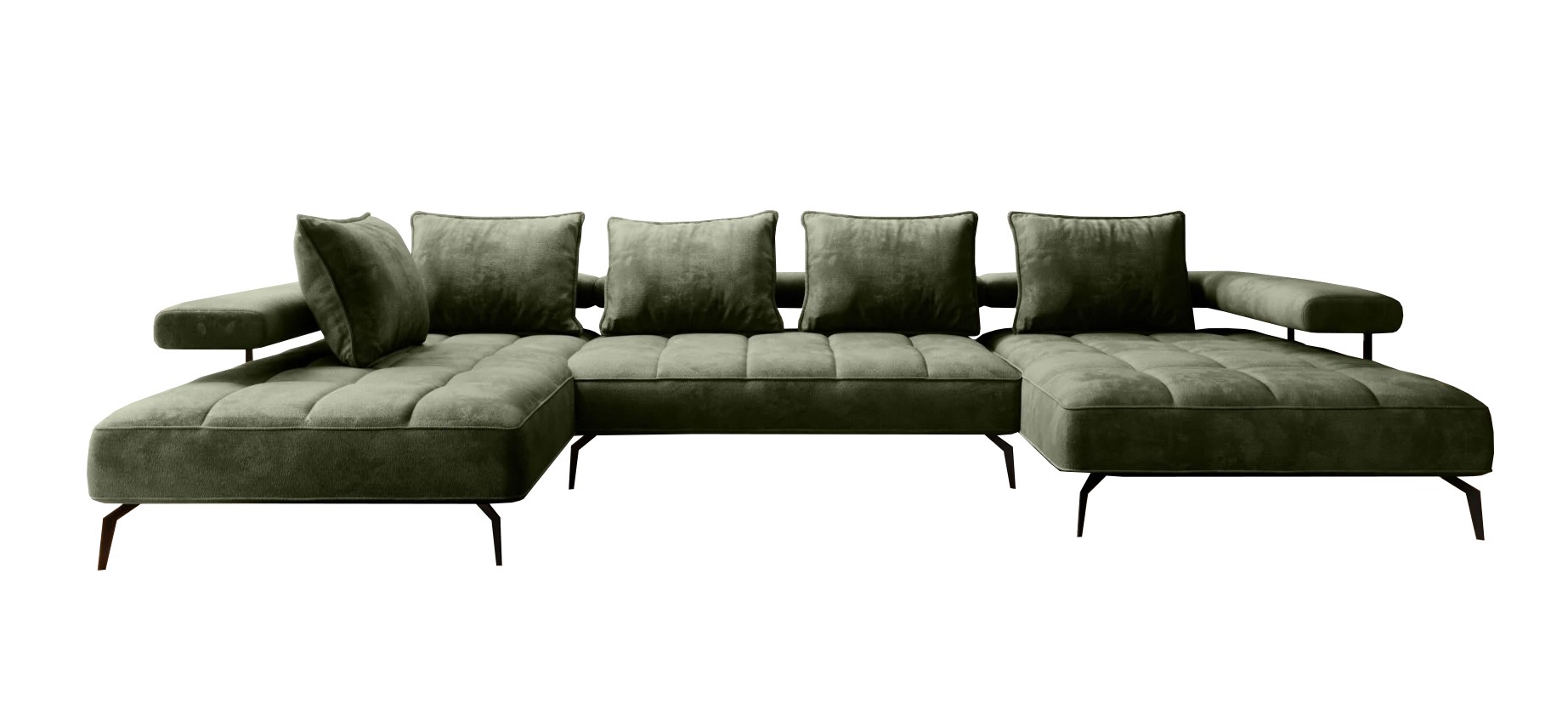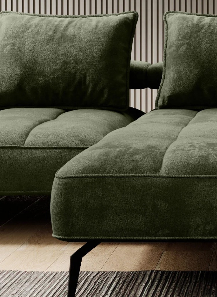 Stylowe pikowane siedzisko i wysokie metalowe nóżki nadają narożnikowi lekko loftowy, a jednocześnie nowoczesny charakter.