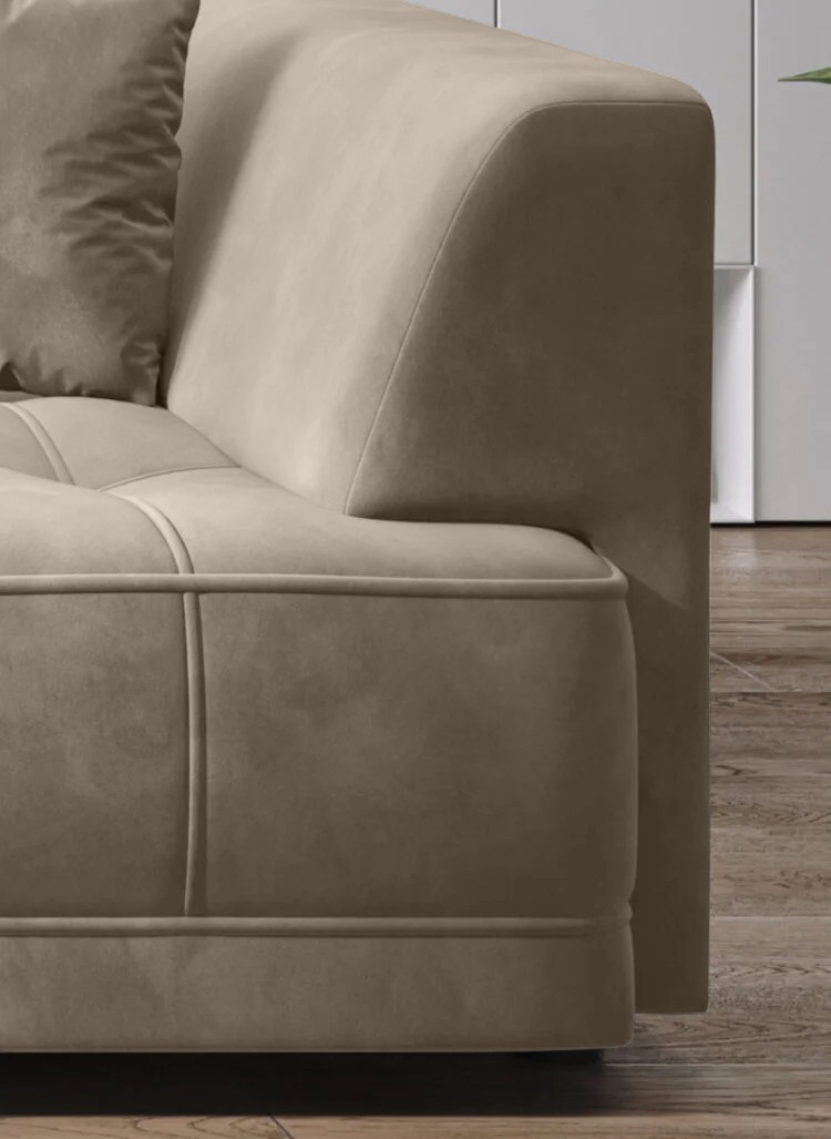 Minimalistyczna forma oraz szerokie siedzisko z funkcją spania tworzą harmonijne połączenie stylu i wygody w nowoczesnym wnętrzu.