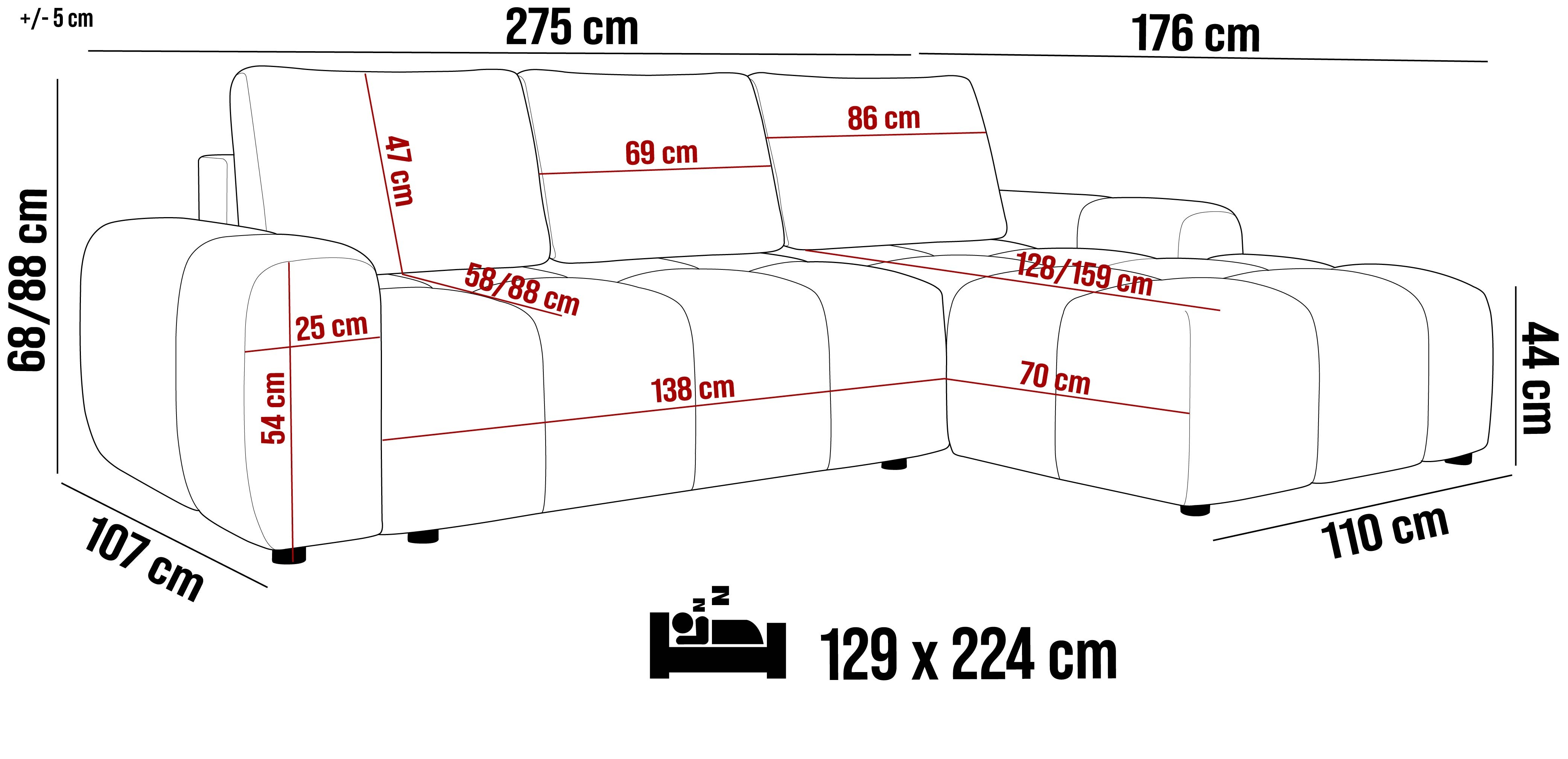 275x176x88 cm