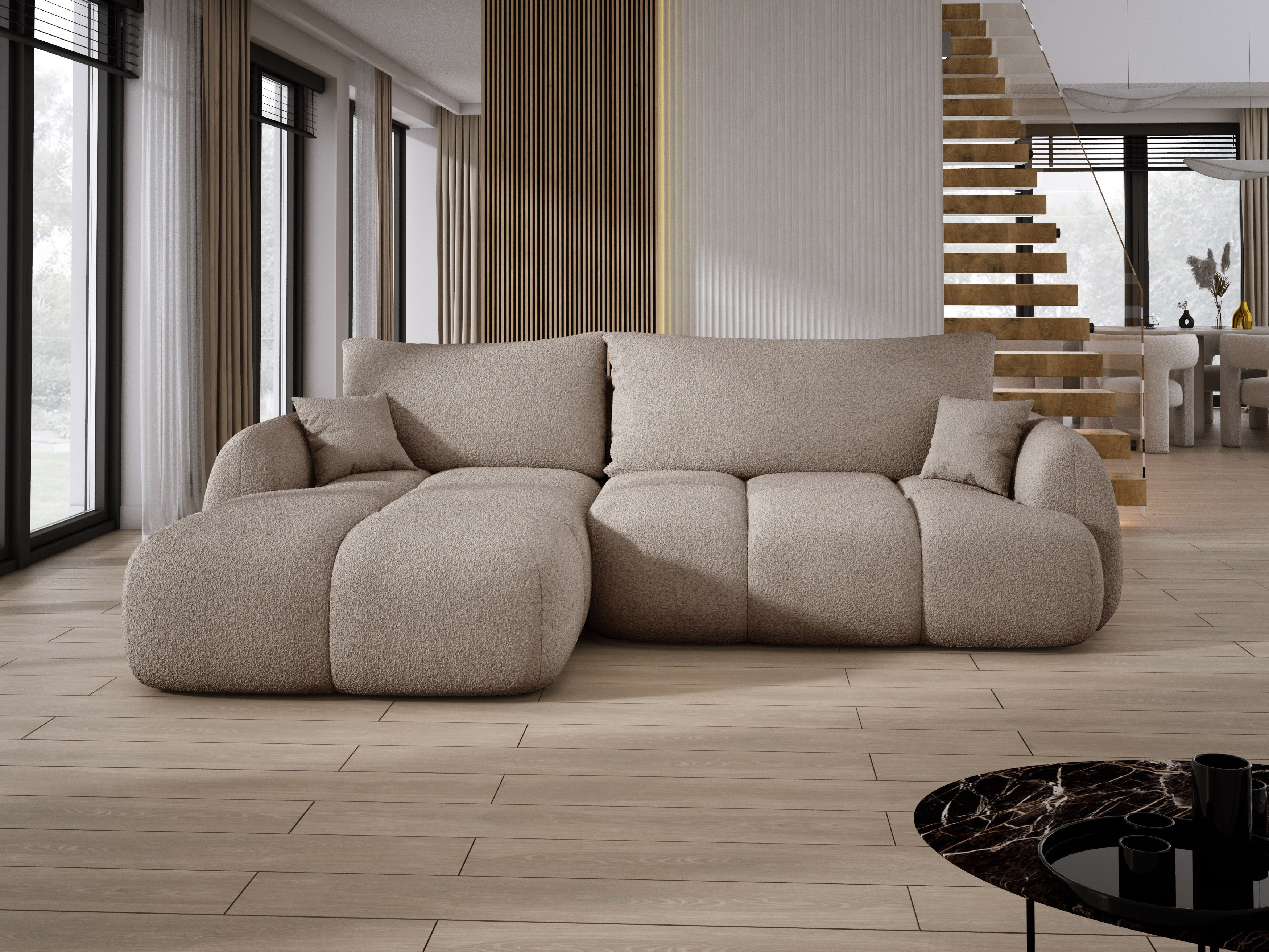 Dostępny w wielu wariantach kolorystycznych i szerokiej gamie tkanin, Narożnik COCO WIND bez trudu dopasuje się do wystroju Twojego wnętrza, nadając mu niepowtarzalnego stylu!
