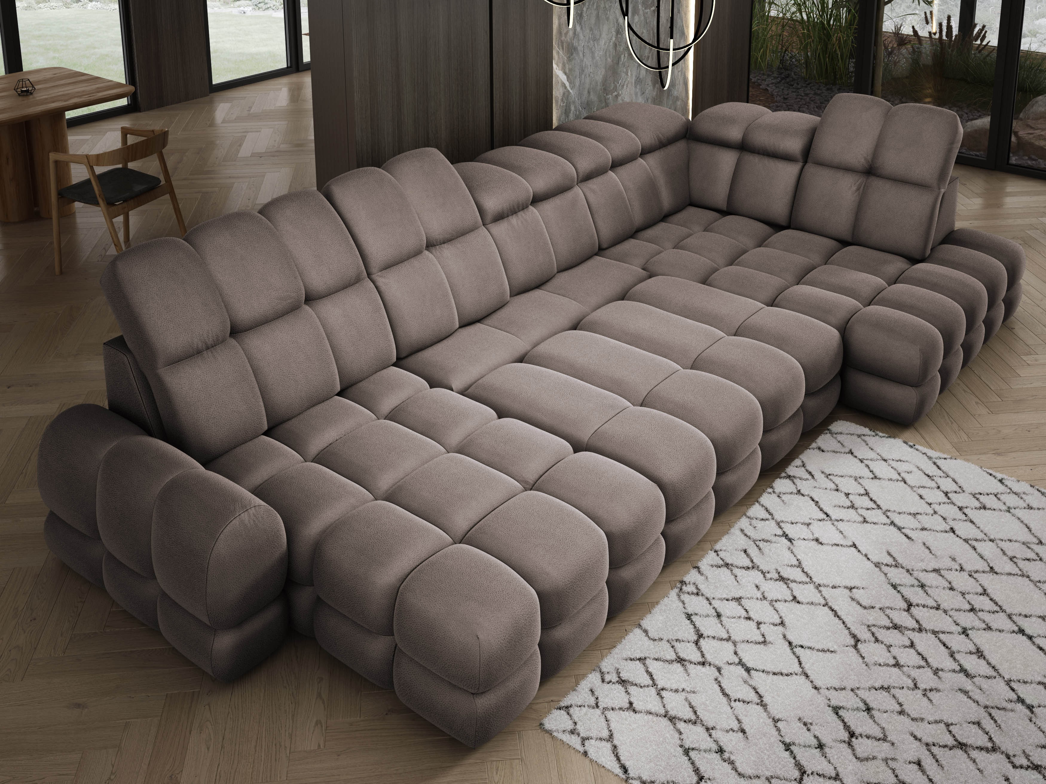 Wyposażony w elektryczną funkcję spania, Tollo XL zapewnia komfort użytkowania na co dzień i pełną wygodę podczas odpoczynku. Mechanizm wysuwania działa płynnie i cicho, a możliwość regulacji głębokości siedziska pozwala dostosować mebel do własnych potrzeb – od relaksu po pełnowymiarową funkcję snu. Zintegrowany pojemnik na pościel ułatwia organizację i utrzymanie porządku bez konieczności rezygnowania z estetyki.