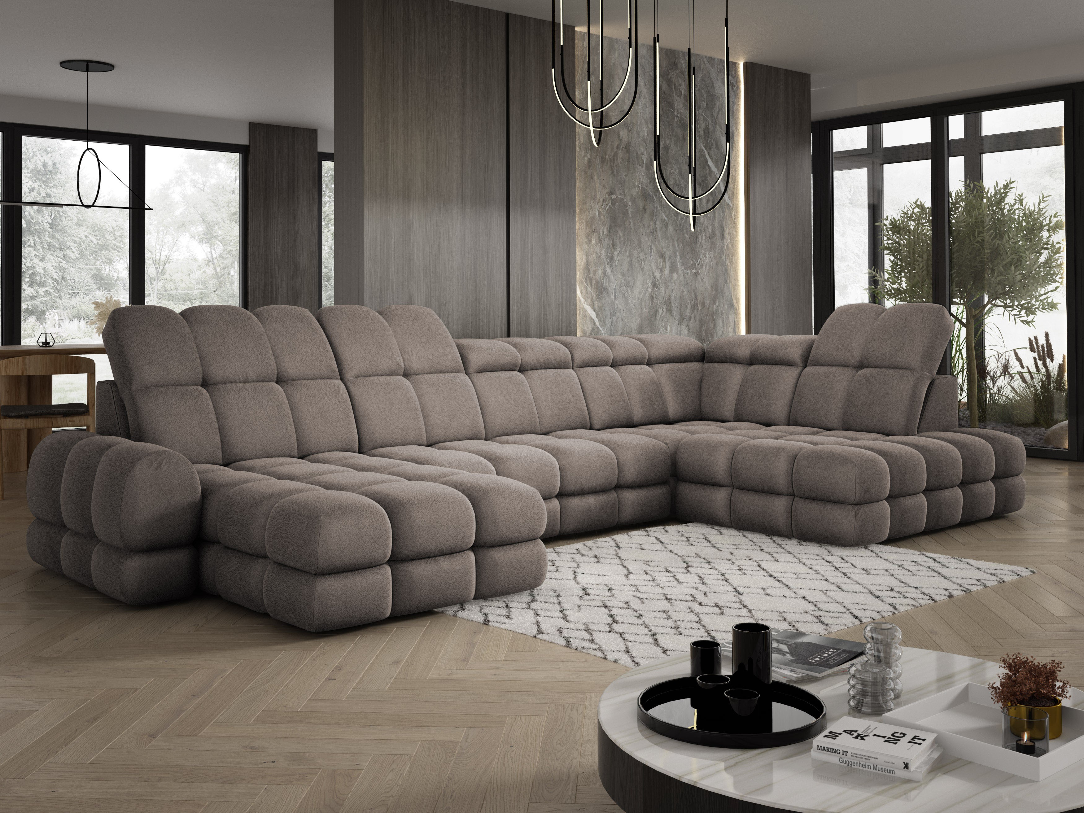 Narożnik TOLLO XL z elektryczną regulacją siedziska Prawostronny w tkaninie promocyjnej BUBBLE 03 WERSAL