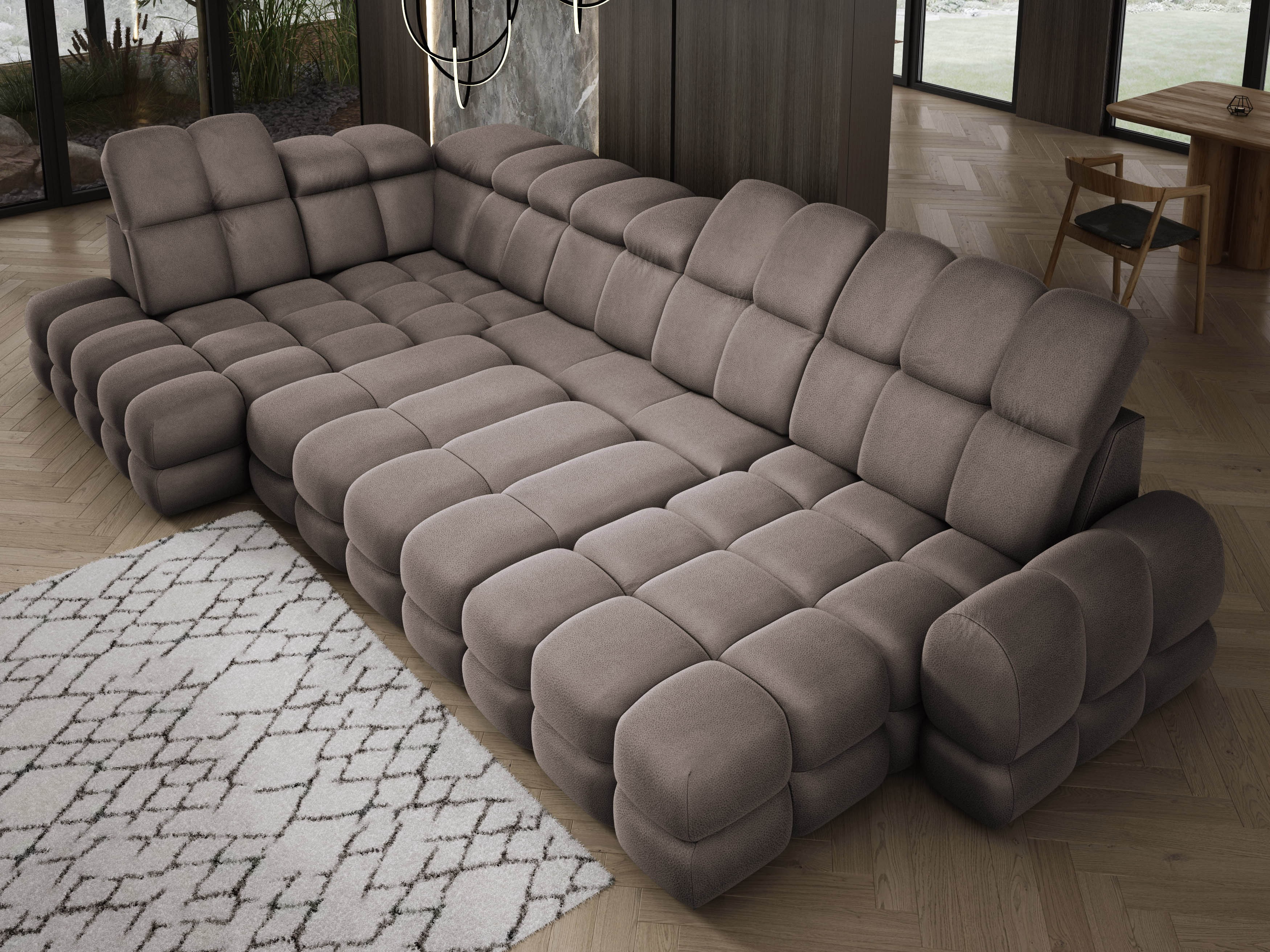 Wyposażony w elektryczną funkcję spania, Tollo L zapewnia komfort użytkowania na co dzień i pełną wygodę podczas odpoczynku. Mechanizm wysuwania działa płynnie i cicho, a możliwość regulacji głębokości siedziska pozwala dostosować mebel do własnych potrzeb – od relaksu po pełnowymiarową funkcję snu. Zintegrowany pojemnik na pościel ułatwia organizację i utrzymanie porządku bez konieczności rezygnowania z estetyki.
