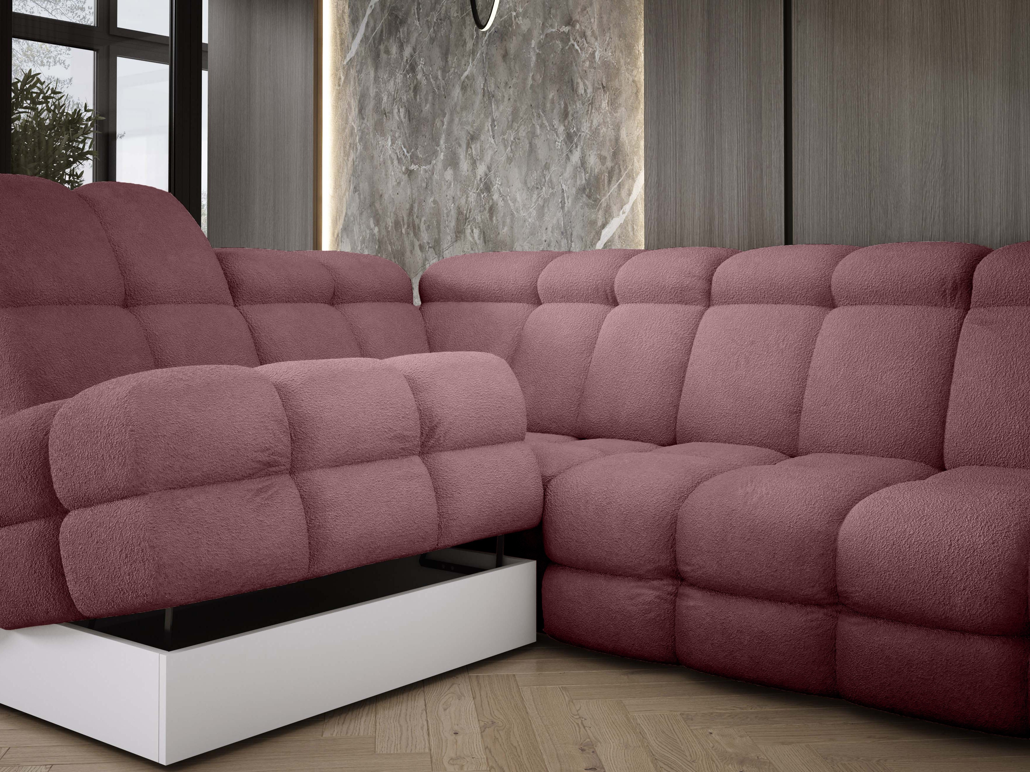 Wyposażony w elektryczną funkcję spania, Tollo XL zapewnia komfort użytkowania na co dzień i pełną wygodę podczas odpoczynku. Mechanizm wysuwania działa płynnie i cicho, a możliwość regulacji głębokości siedziska pozwala dostosować mebel do własnych potrzeb – od relaksu po pełnowymiarową funkcję snu. Zintegrowany pojemnik na pościel ułatwia organizację i utrzymanie porządku bez konieczności rezygnowania z estetyki.
