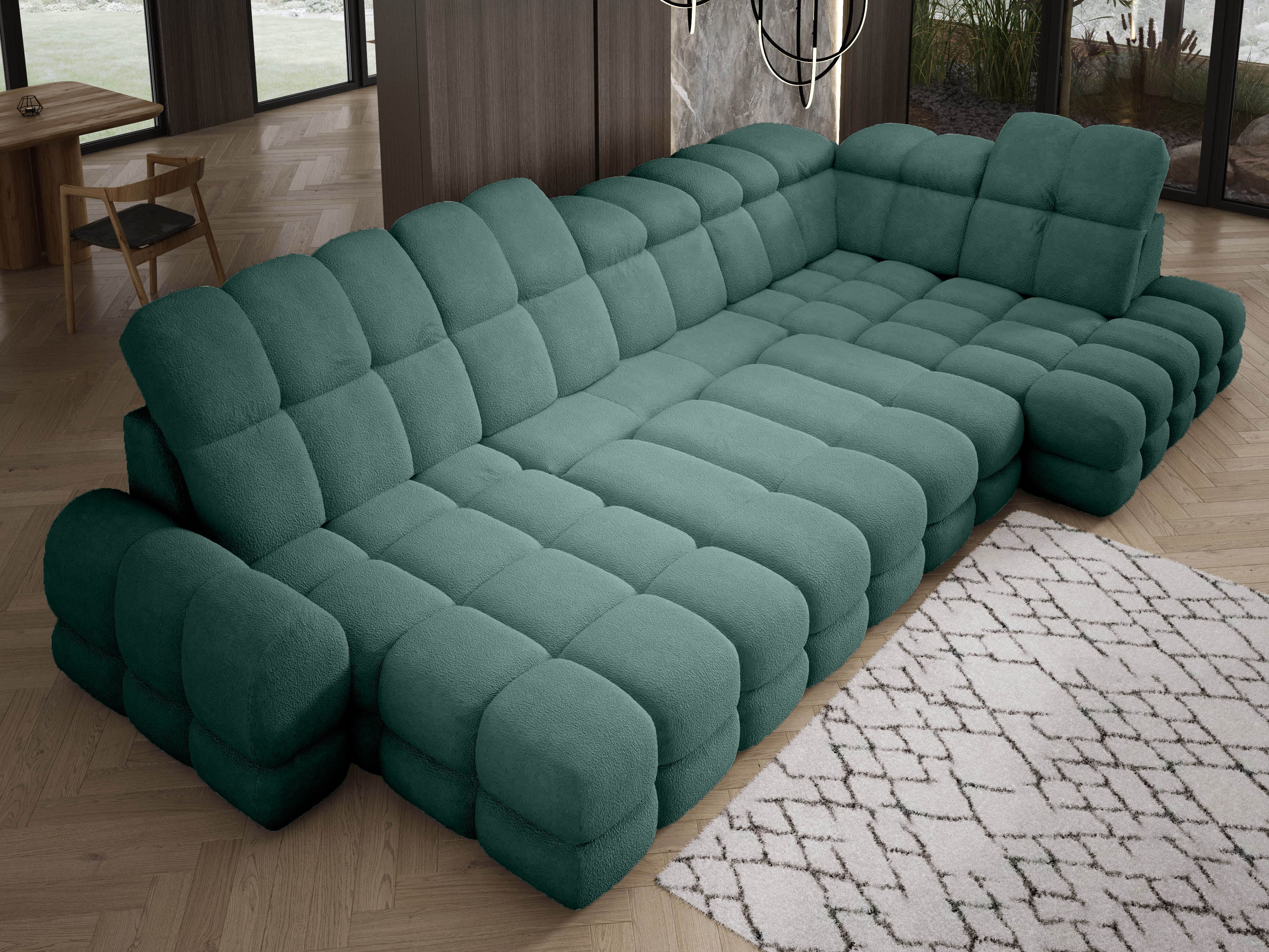 Nowoczesny, designerski wygląd, Odporność na mechacenie i zaciąganie, Przyjemna w dotyku i puszysta, Wyjątkowa struktura typu boucle, Wysoka odporność na ścieranie