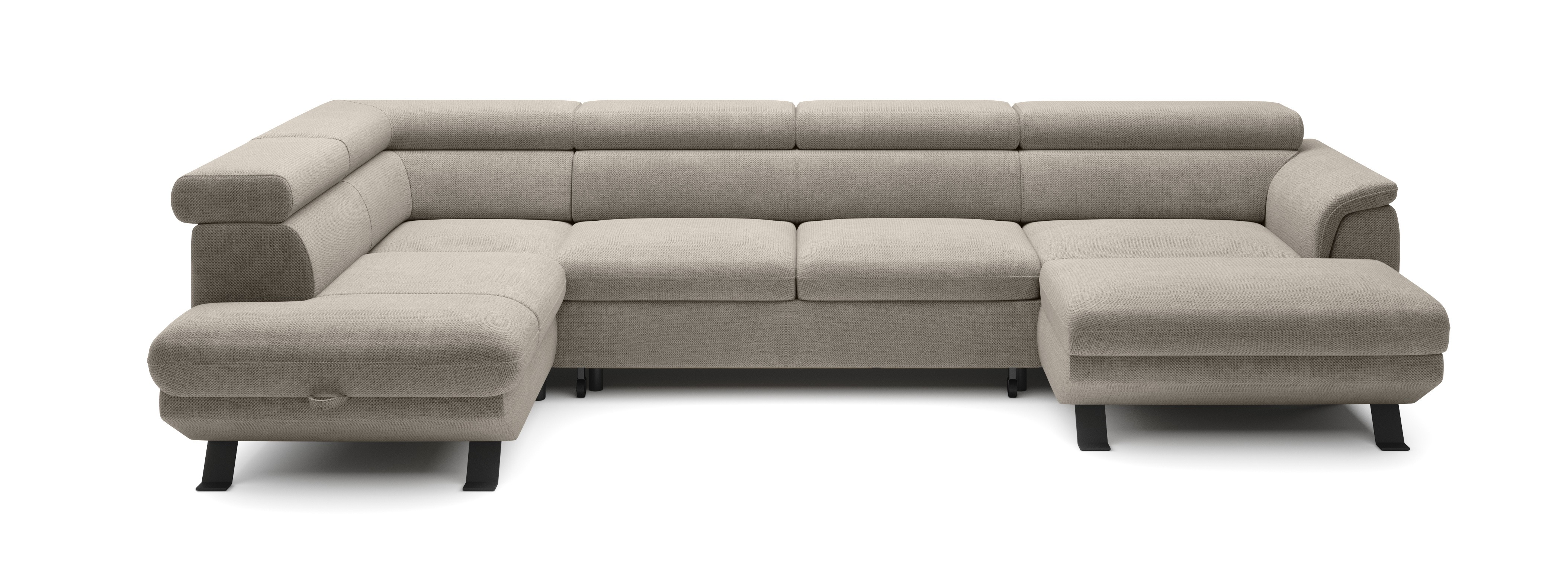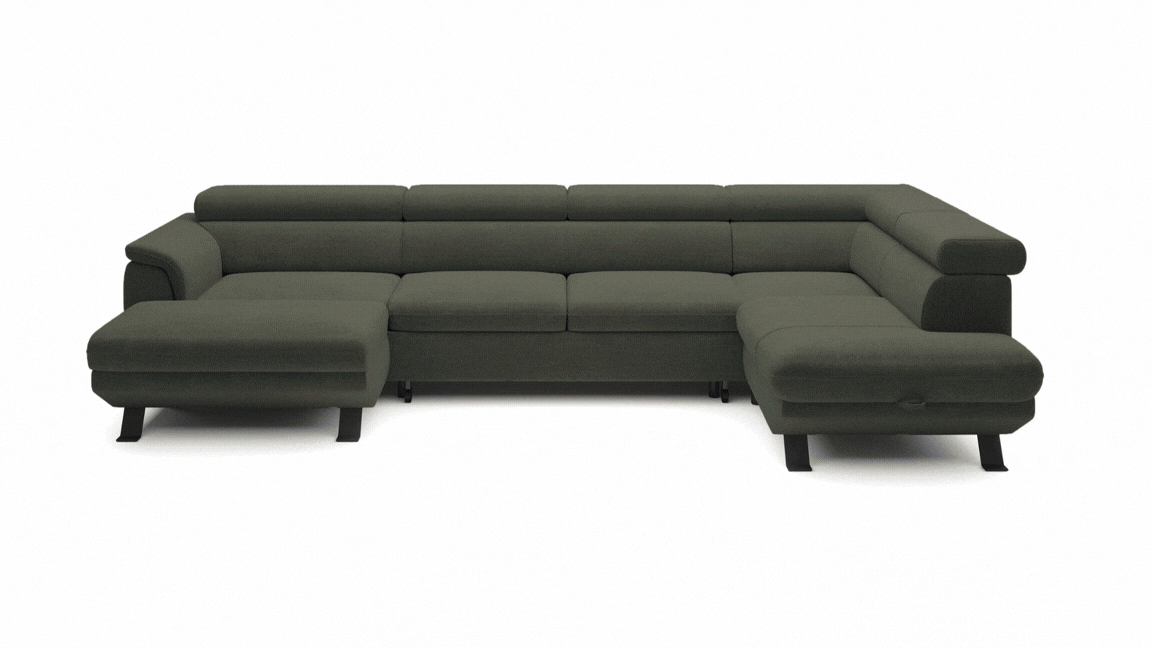 Solidny stelaż z drewna oraz płyty wiórowej zapewnia stabilność i trwałość konstrukcji, a możliwość wyboru narożnika prawego lub lewego pozwala idealnie dopasować mebel do układu wnętrza.