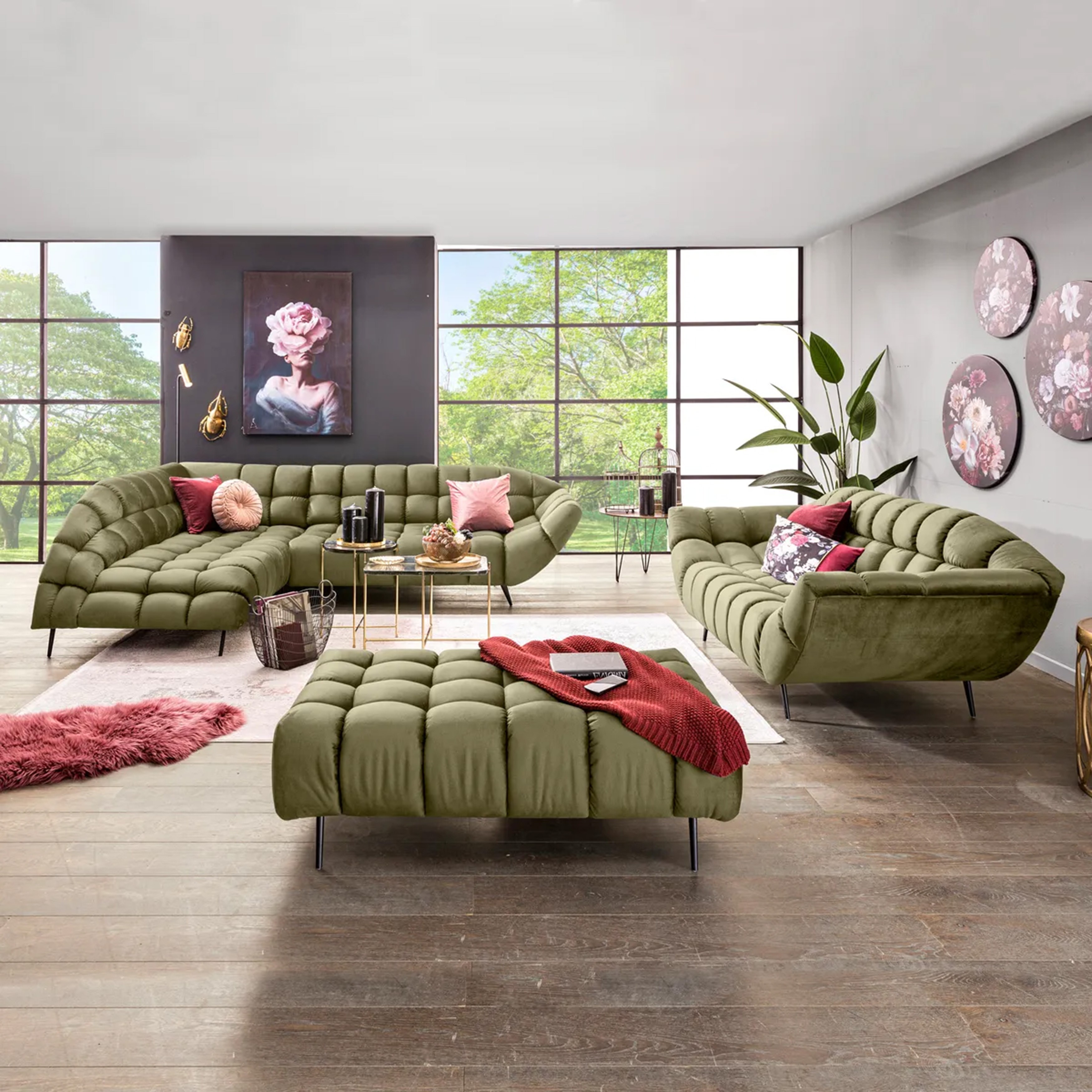 Narożnik GAPPA to mebel wolnostojący, z tyłem wykończonym tkaniną, dzięki czemu można go ustawić w dowolnym miejscu salonu – także na środku pomieszczenia.