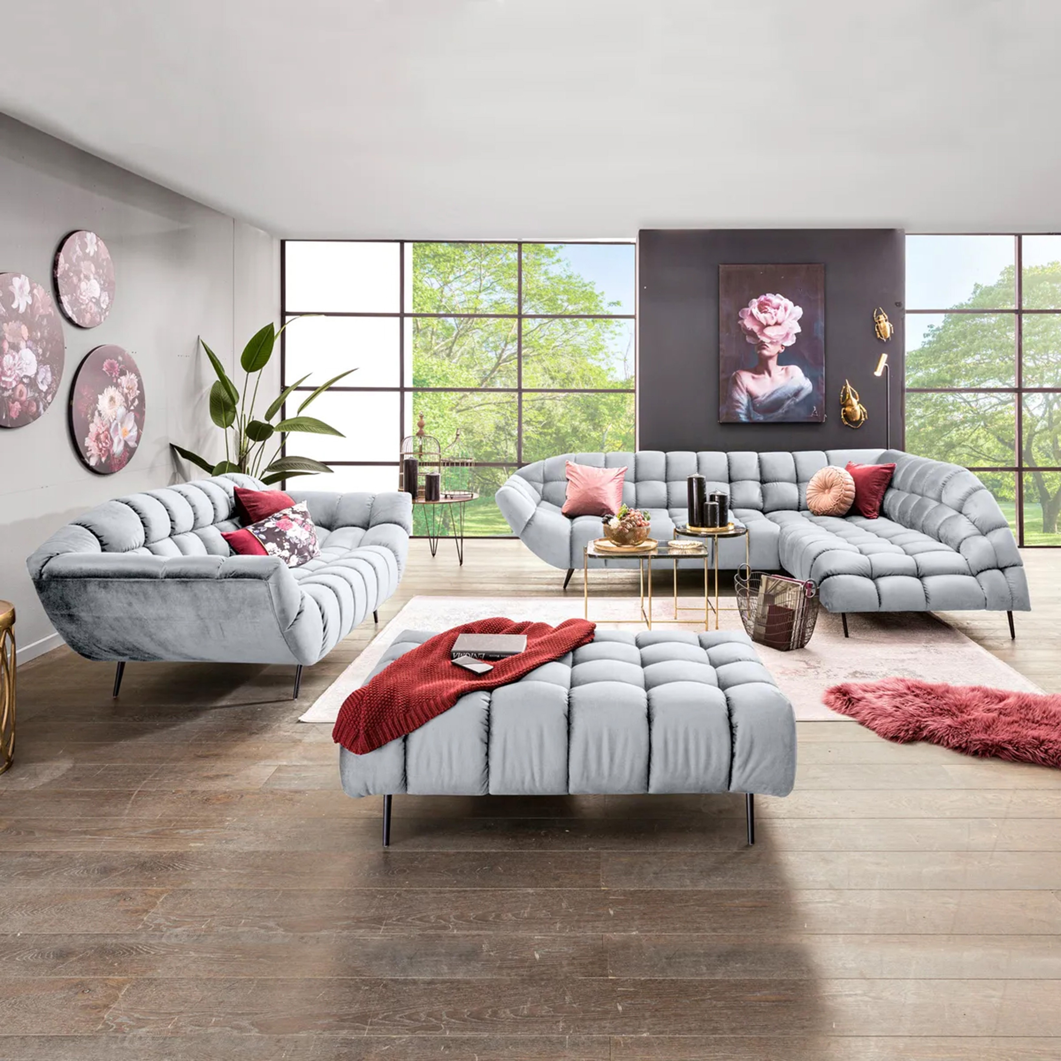 Narożnik GAPPA to mebel wolnostojący, z tyłem wykończonym tkaniną, dzięki czemu można go ustawić w dowolnym miejscu salonu – także na środku pomieszczenia.