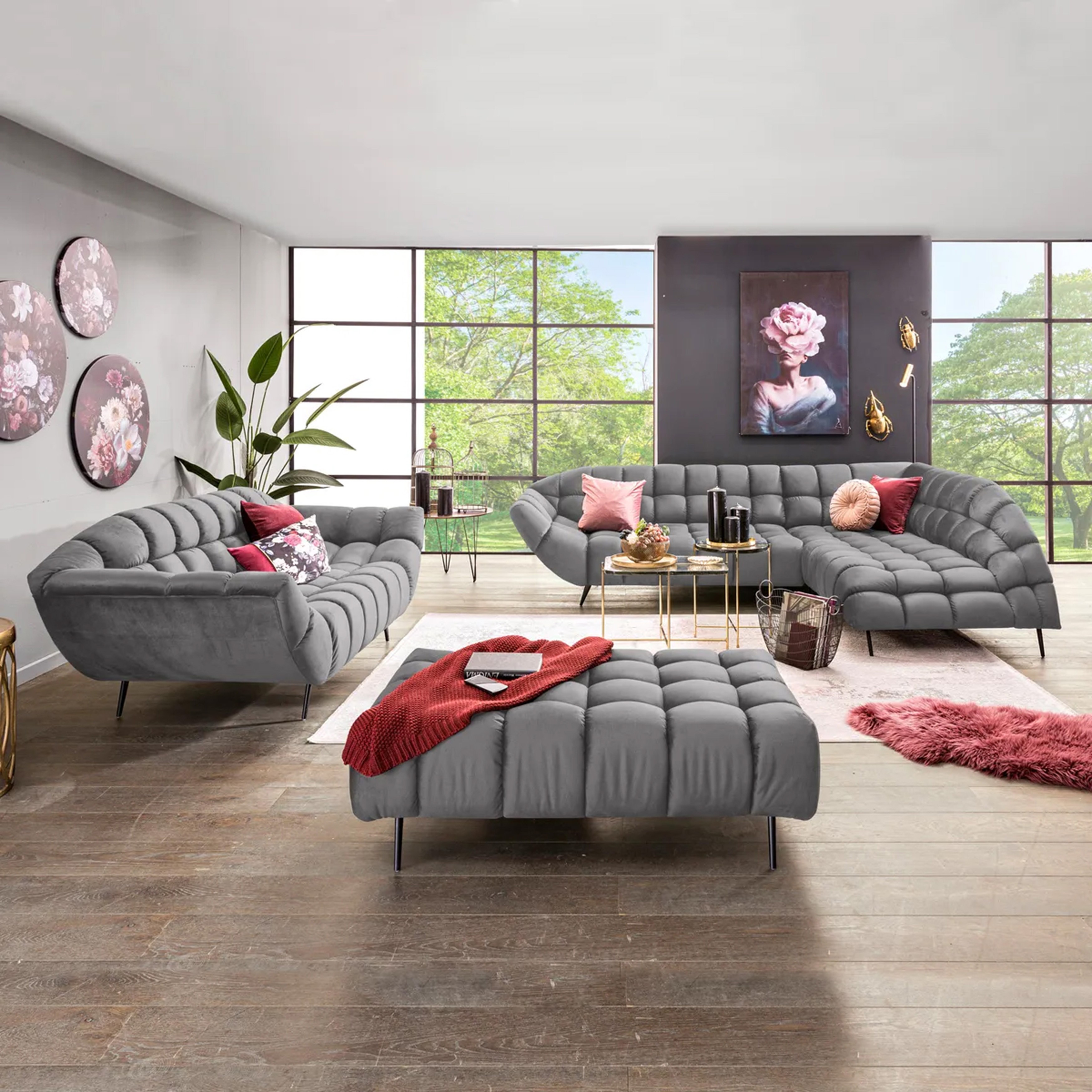 Narożnik GAPPA to mebel wolnostojący, z tyłem wykończonym tkaniną, dzięki czemu można go ustawić w dowolnym miejscu salonu – także na środku pomieszczenia.