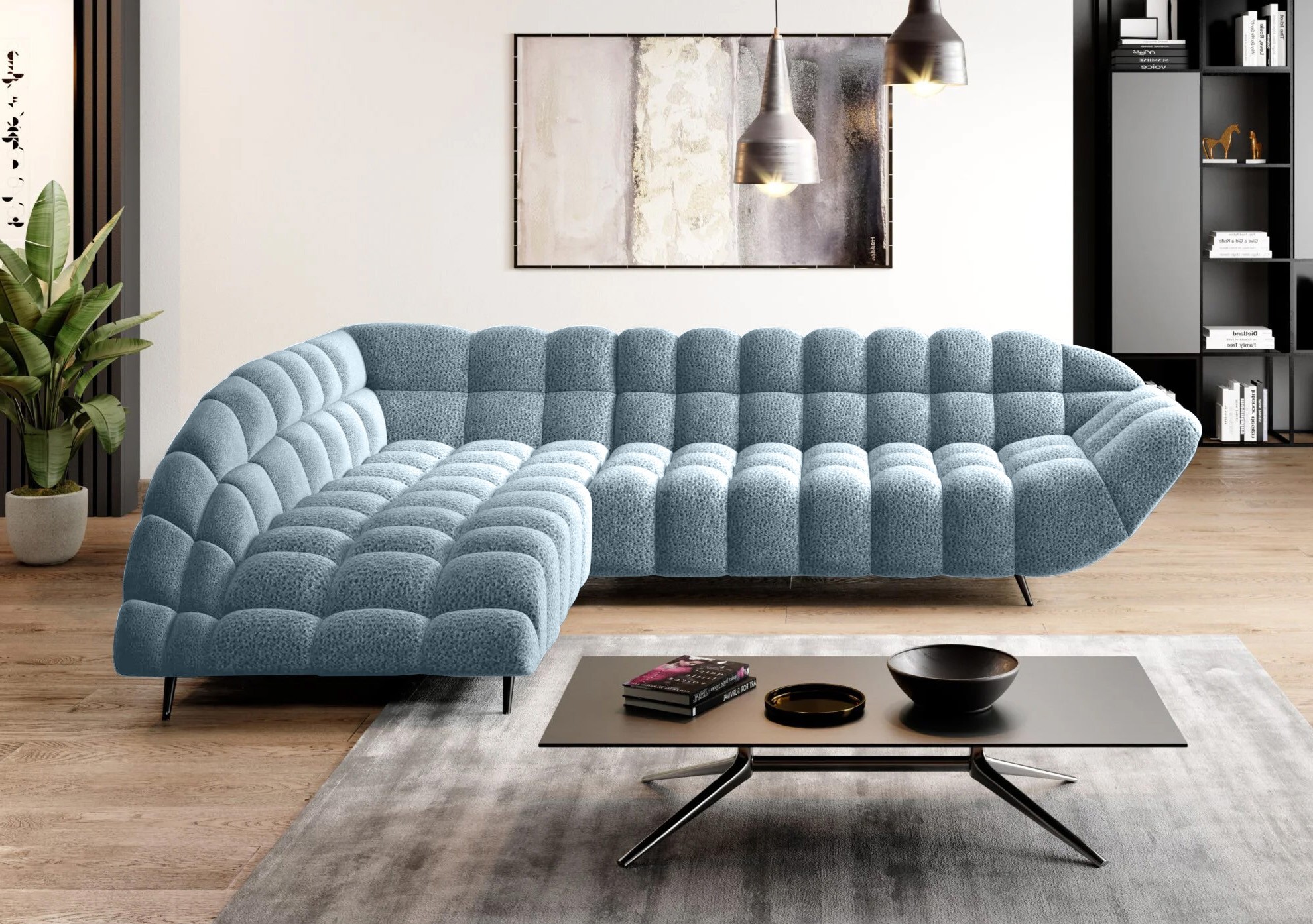 Narożnik GAPPA to mebel wolnostojący, z tyłem wykończonym tkaniną, dzięki czemu można go ustawić w dowolnym miejscu salonu – także na środku pomieszczenia.