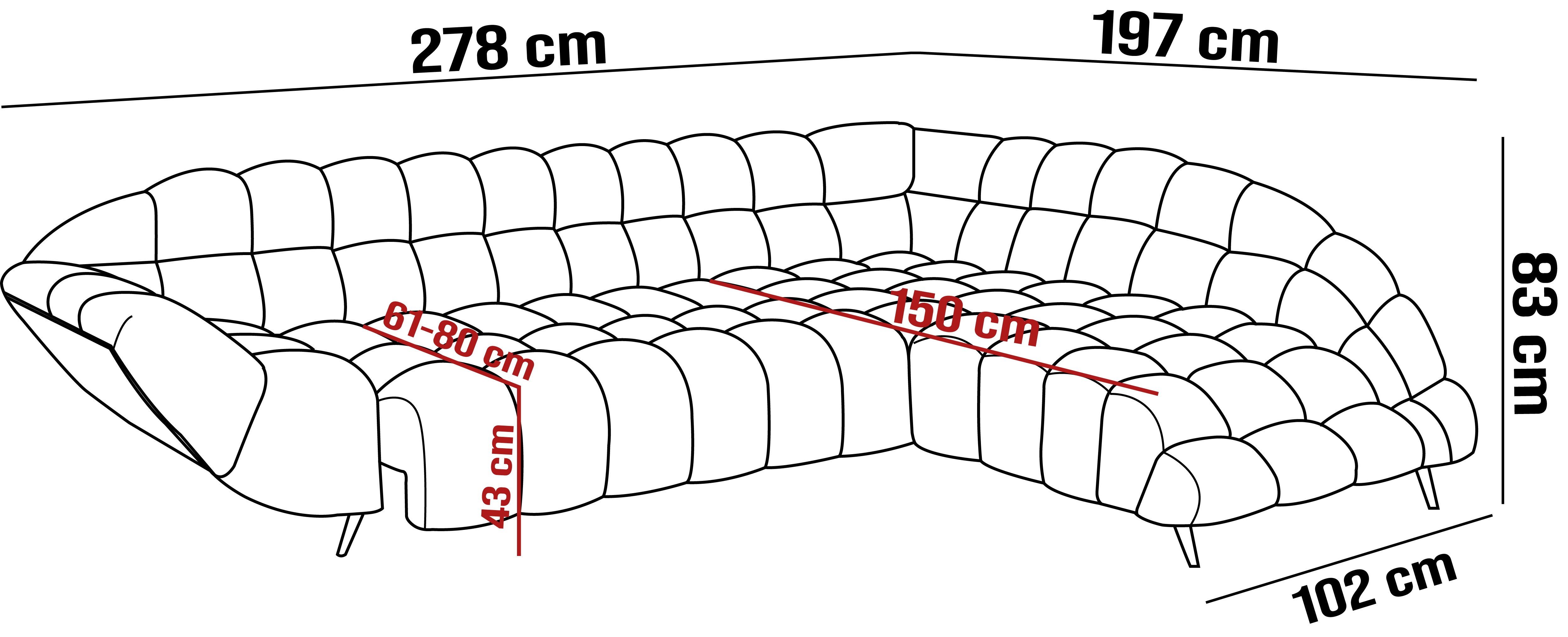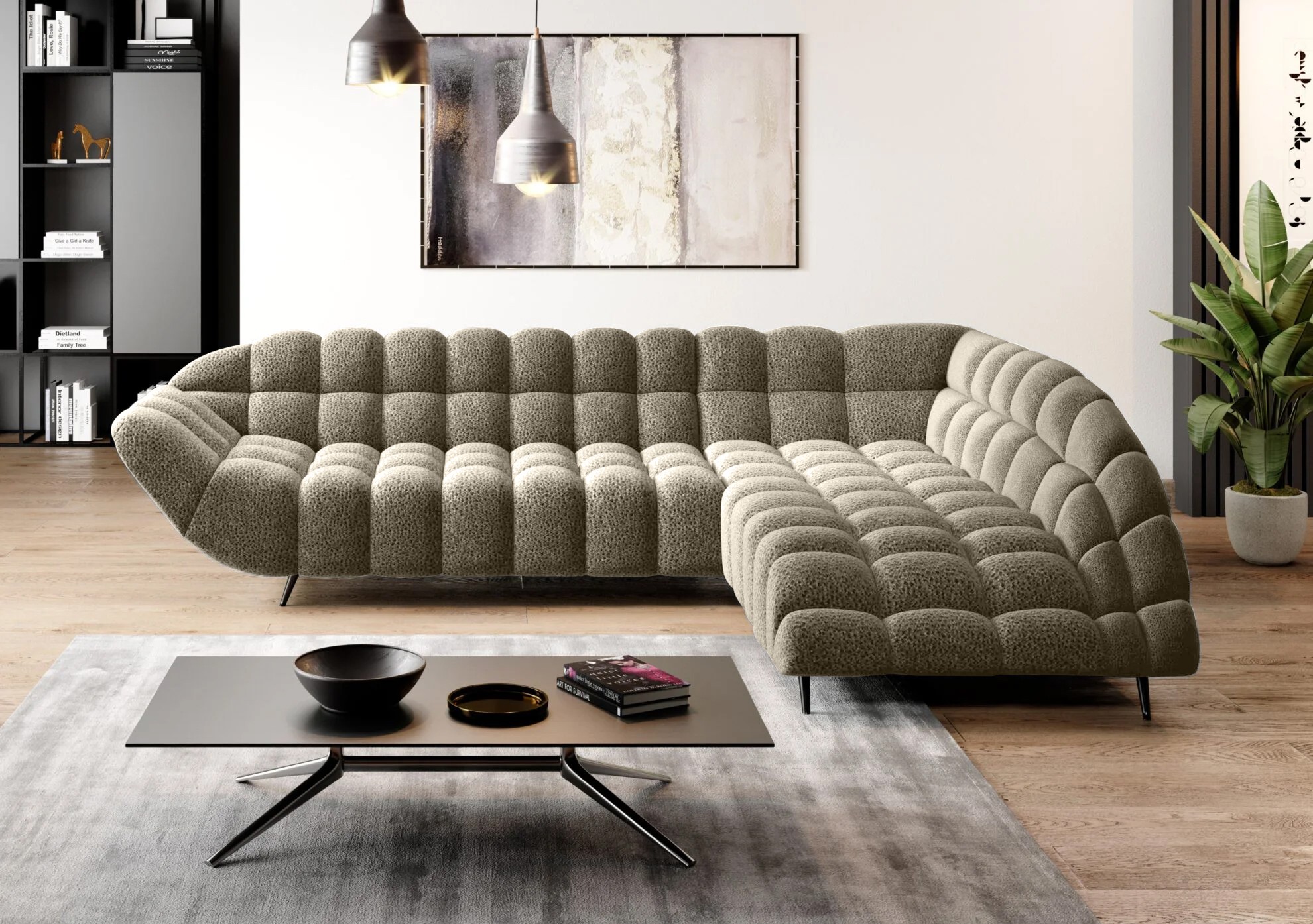 Narożnik GAPPA to mebel wolnostojący, z tyłem wykończonym tkaniną, dzięki czemu można go ustawić w dowolnym miejscu salonu – także na środku pomieszczenia.