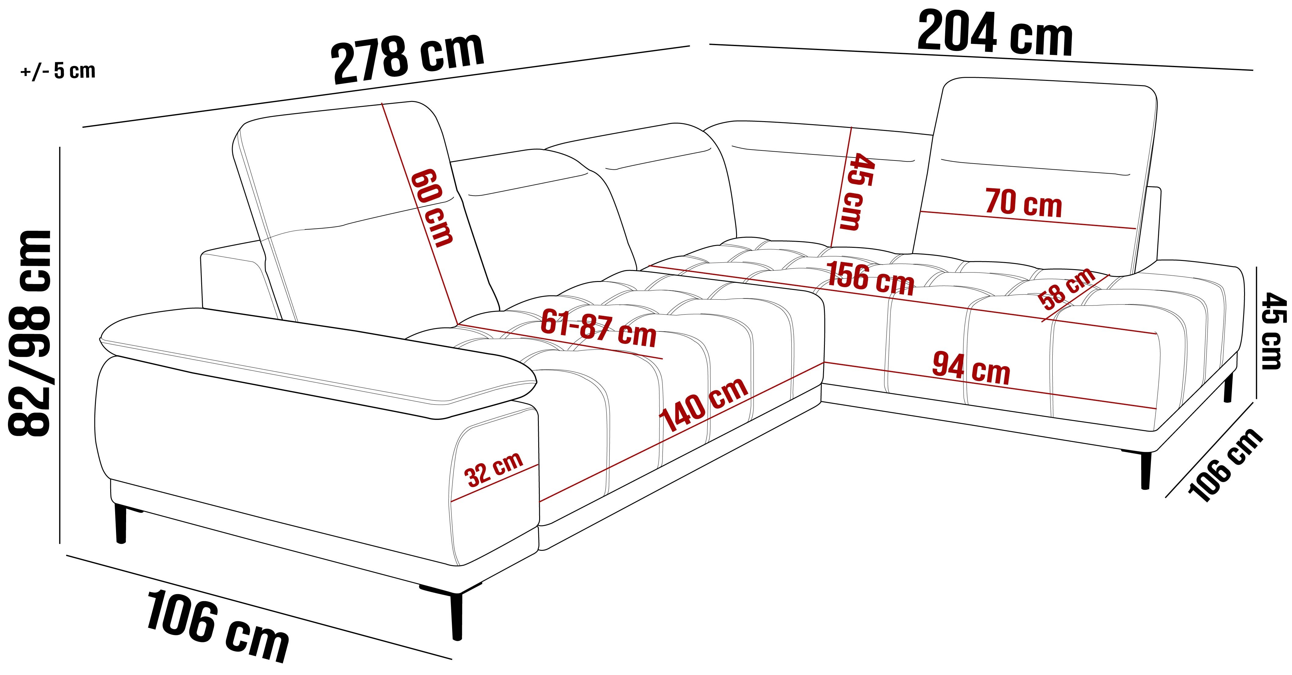 Dodatkowo narożnik wyposażony jest w 5 regulowanych zagłówków z możliwością blokady w dowolnej pozycji.