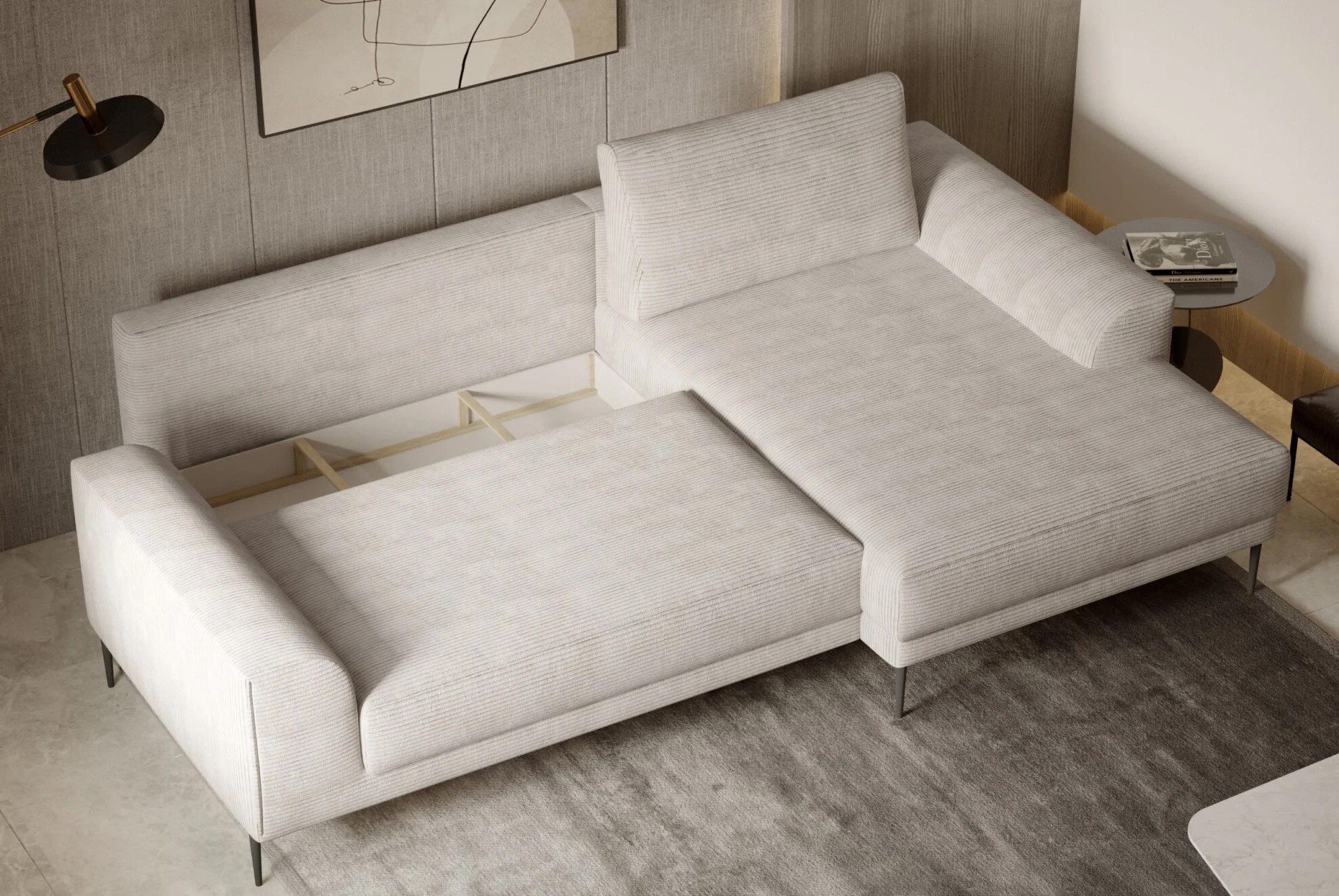 Funkcja spania oraz pojemnik na pościel sprawiają, że CAPITOL jest nie tylko miejscem wypoczynku w ciągu dnia, ale również wygodnym łóżkiem dla gości.
