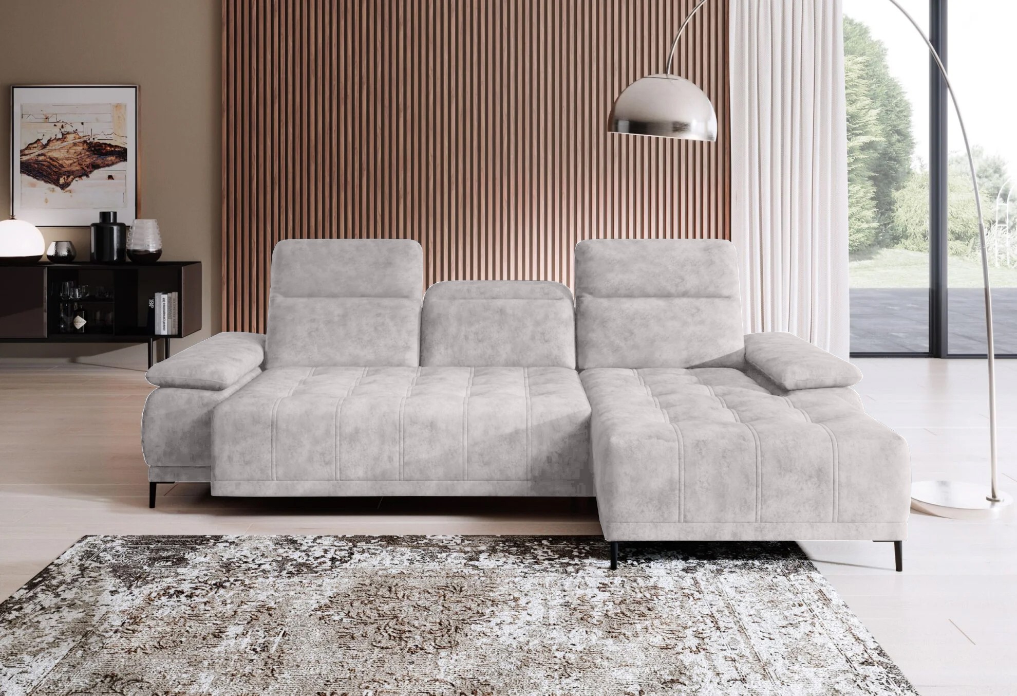 Dodatkowo narożnik wyposażony jest w 3 regulowane zagłówko z możliwością blokady w dowolnej pozycji.