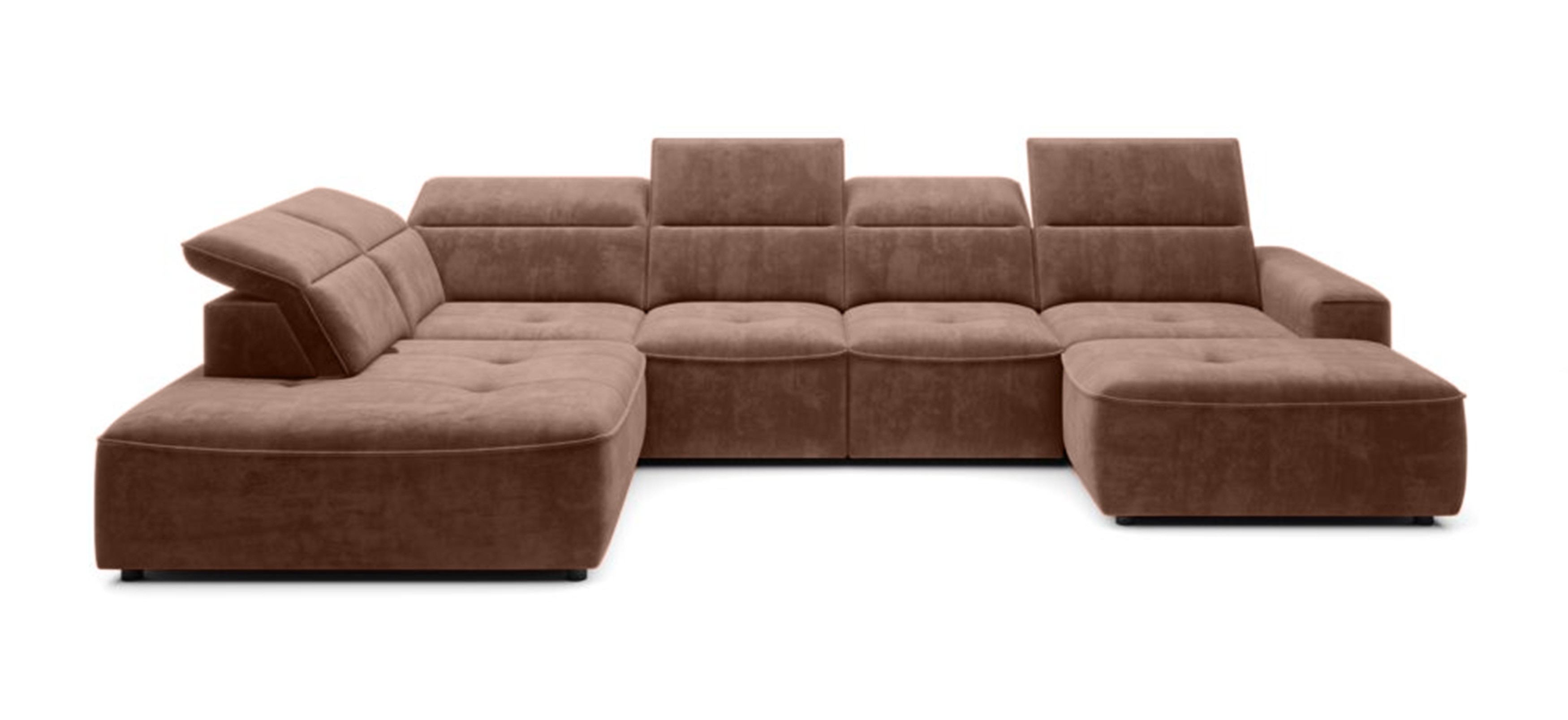 Minimalistyczna forma i subtelne pikowania nadają narożnikowi wyjątkowego stylu, a regulowane zagłówki oraz elektryczna funkcja spania zapewniają wygodę użytkowania na co dzień.