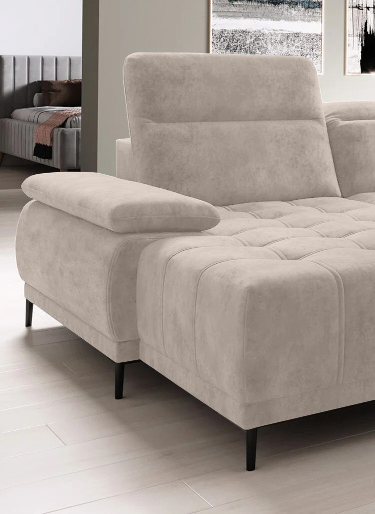 Dodatkowo narożnik wyposażony jest w 6 regulowanych zagłówków z możliwością blokady w dowolnej pozycji.