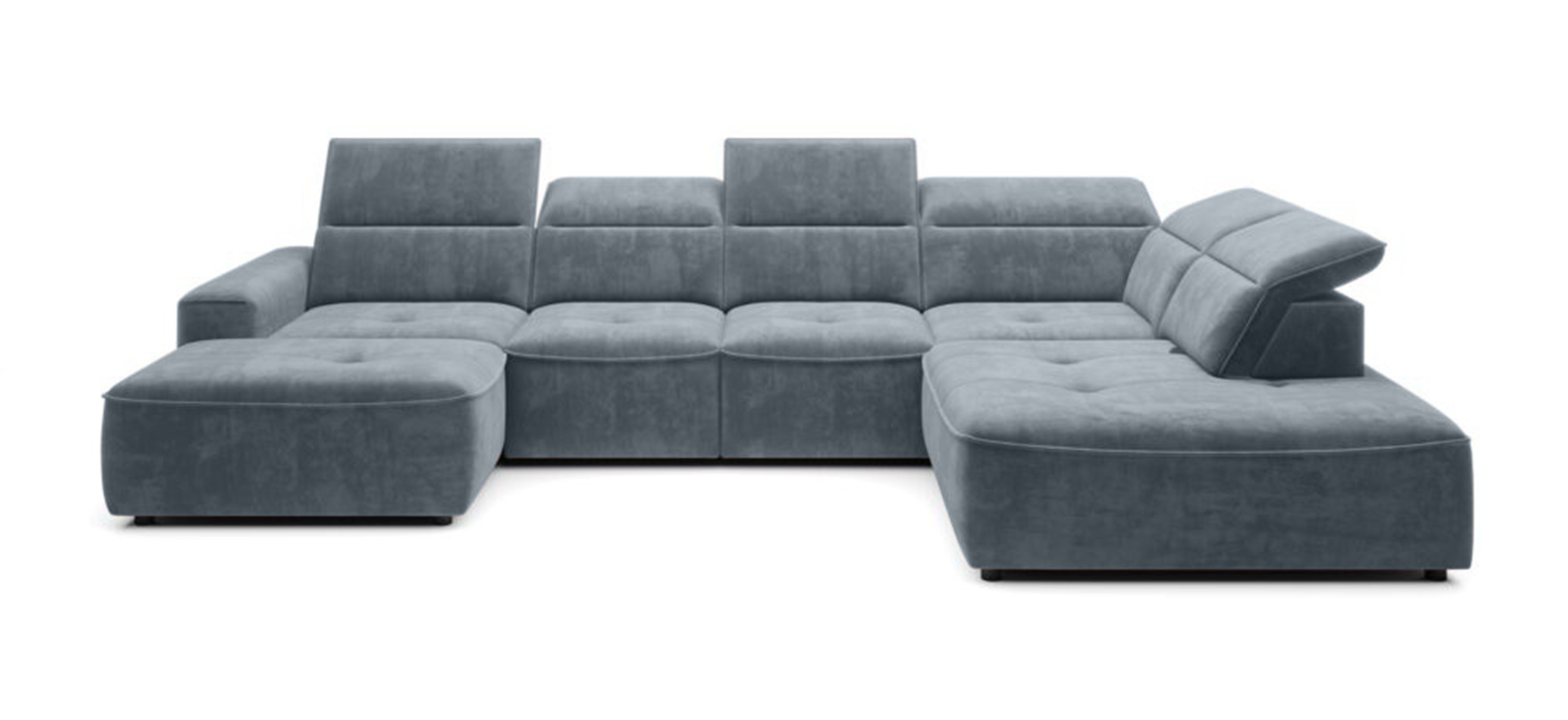 Minimalistyczna forma i subtelne pikowania nadają narożnikowi wyjątkowego stylu, a regulowane zagłówki oraz elektryczna funkcja spania zapewniają wygodę użytkowania na co dzień.