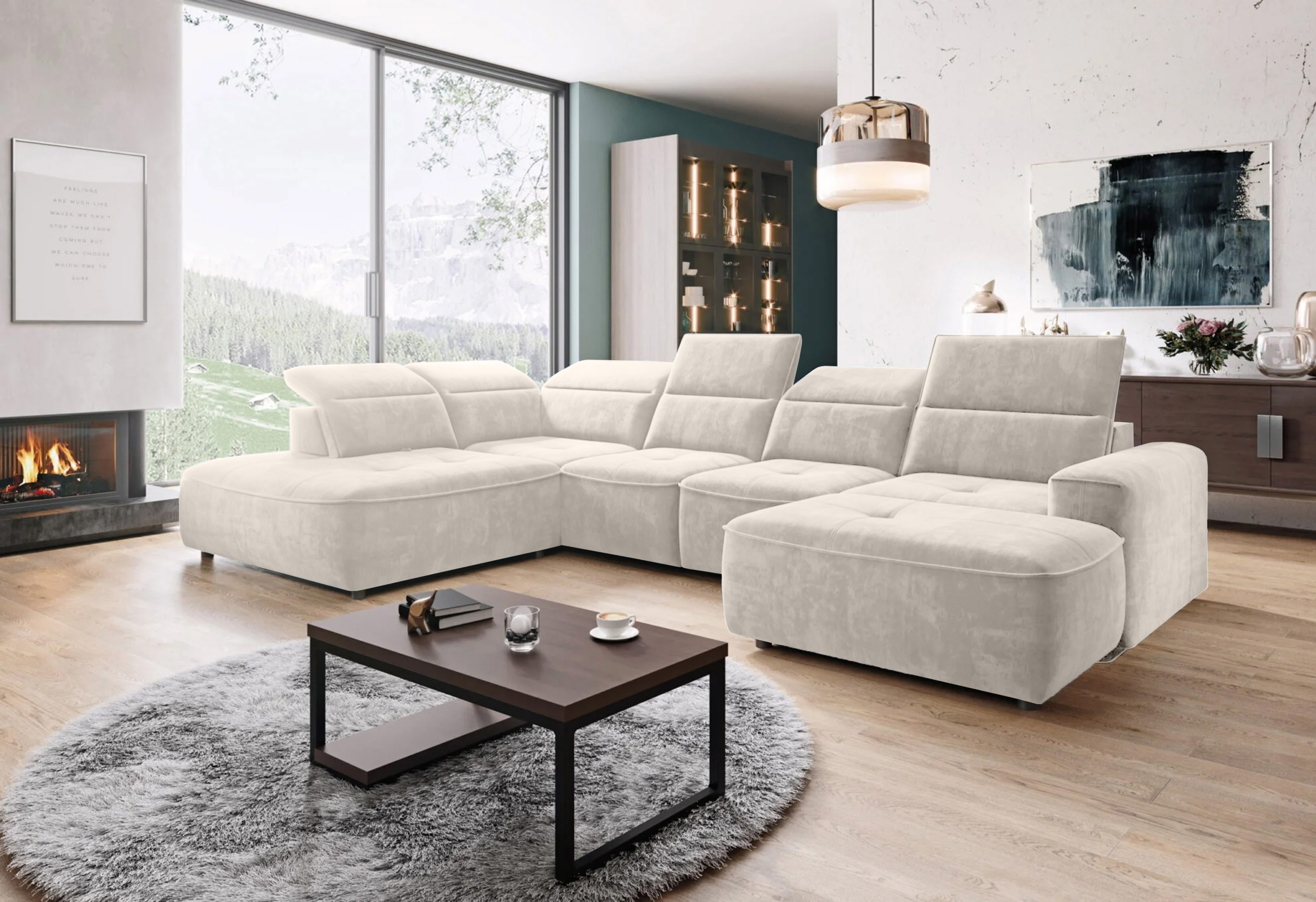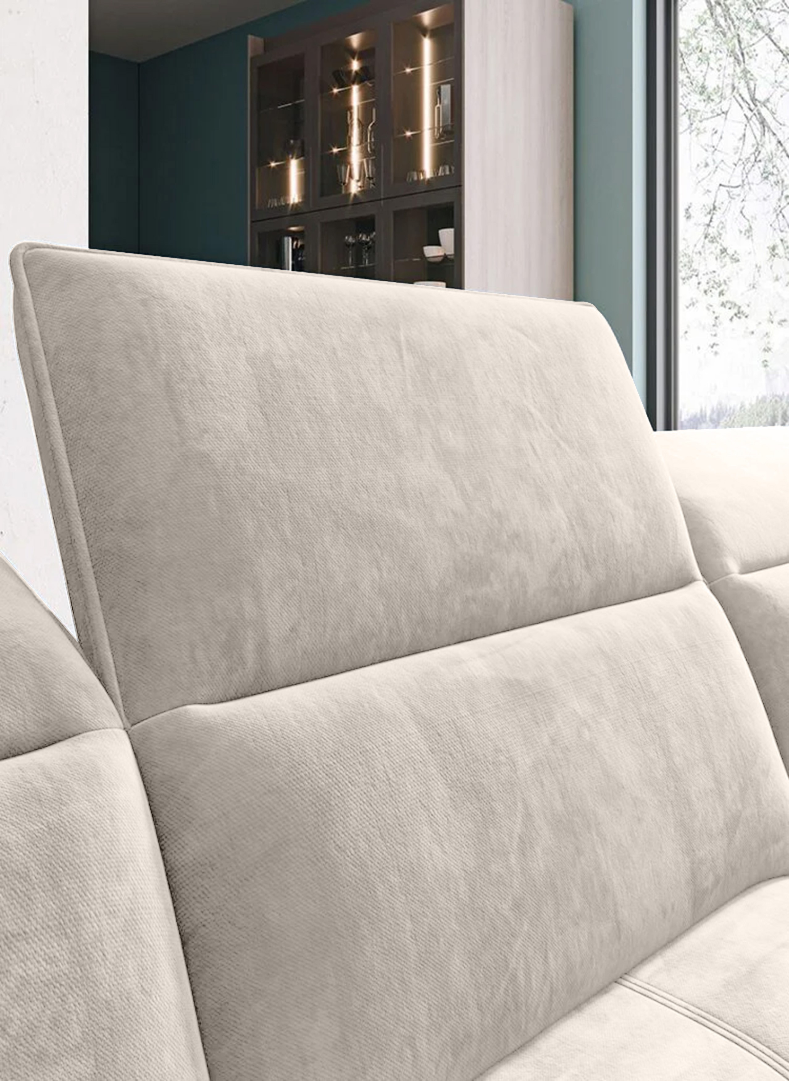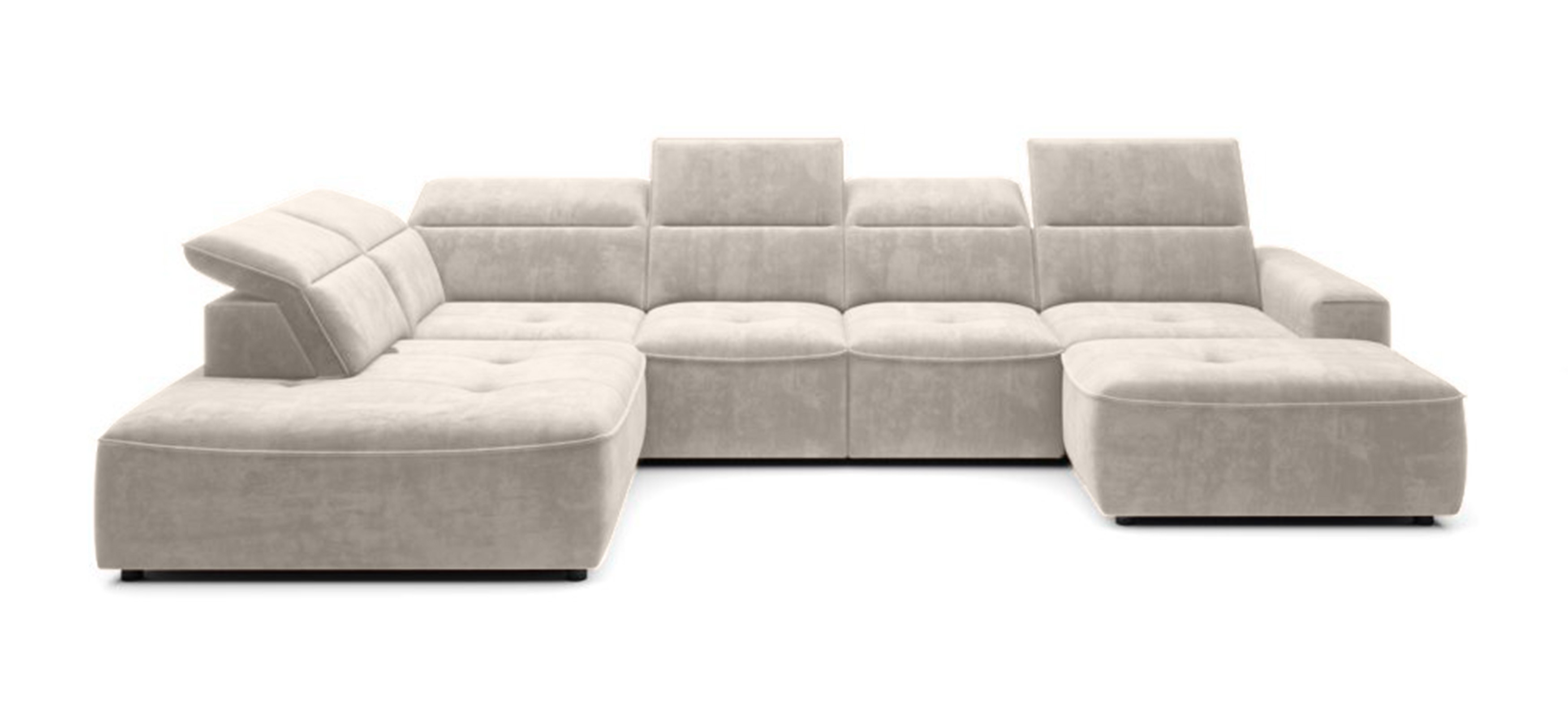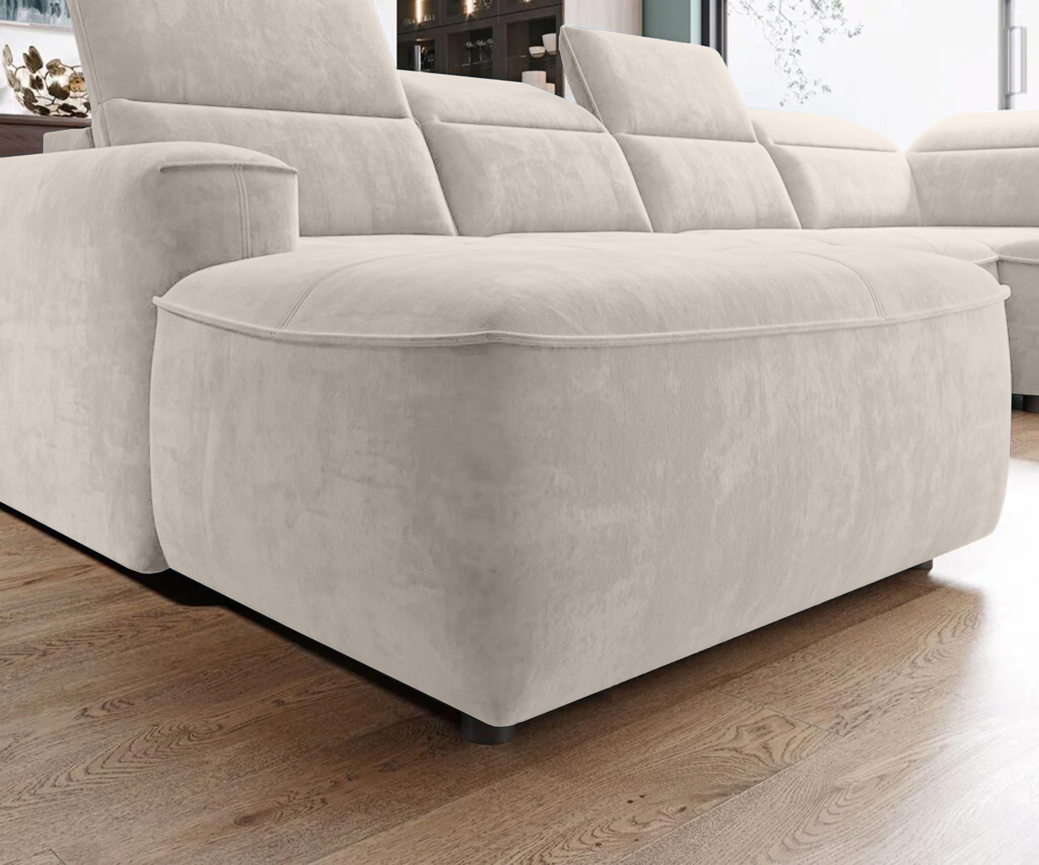 Subtelne pikowania podkreślają nowoczesny charakter, a regulowane zagłówki i elektryczna funkcja spania sprawiają, że narożnik doskonale sprawdza się na co dzień. Dzięki regulowanej głębokości siedziska z łatwością dopasujesz komfort wypoczynku do swoich potrzeb.