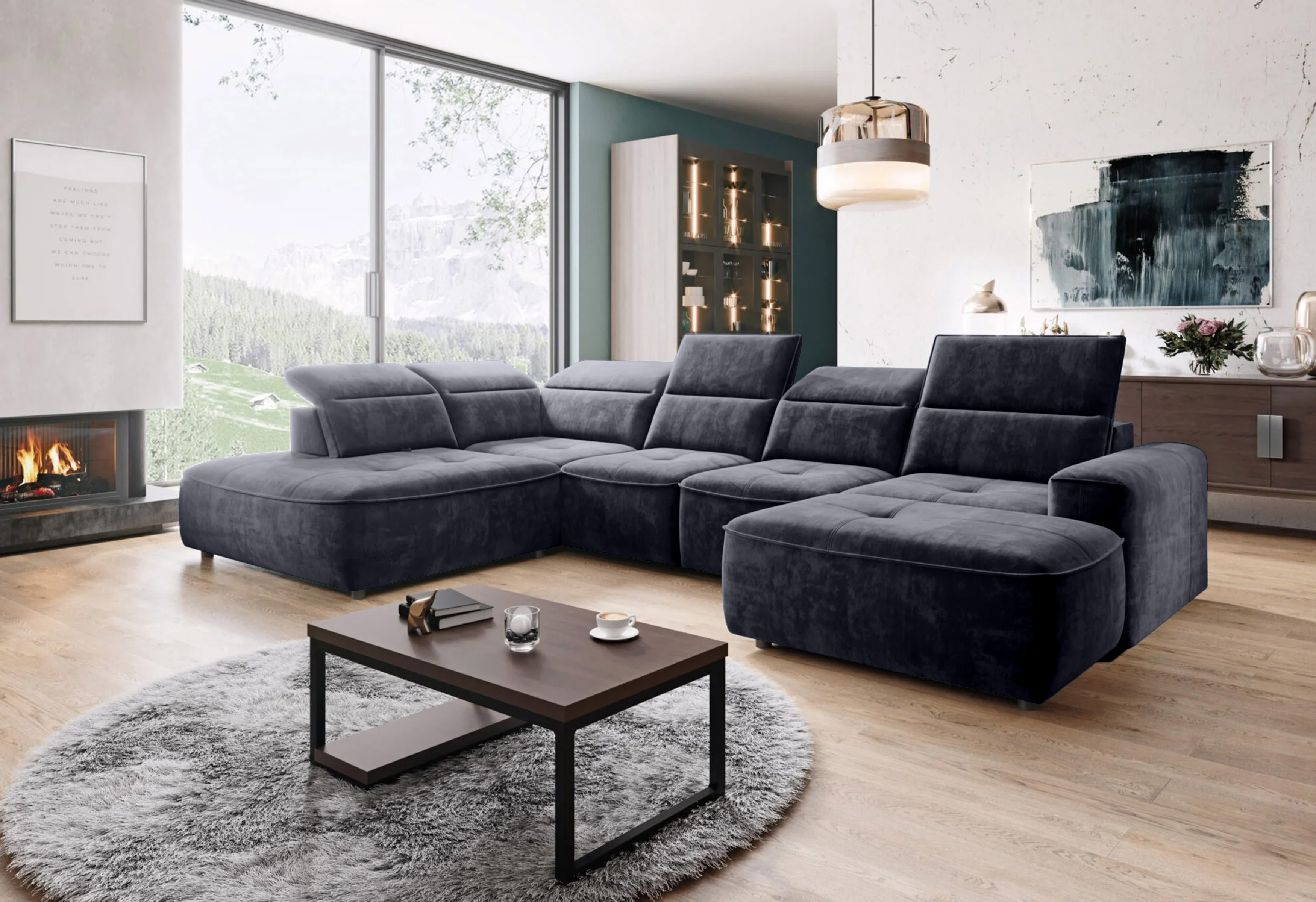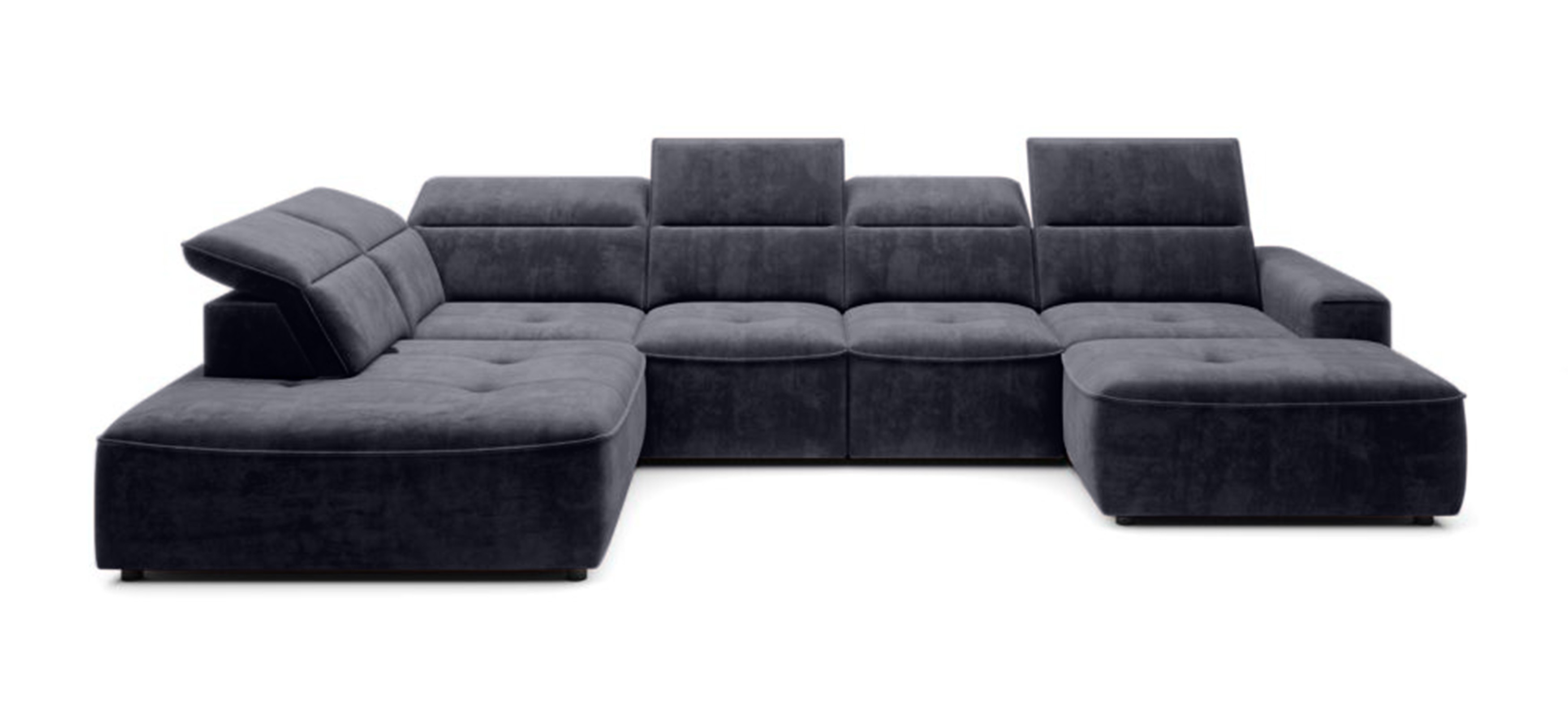 Minimalistyczna forma i subtelne pikowania nadają narożnikowi wyjątkowego stylu, a regulowane zagłówki oraz elektryczna funkcja spania zapewniają wygodę użytkowania na co dzień.