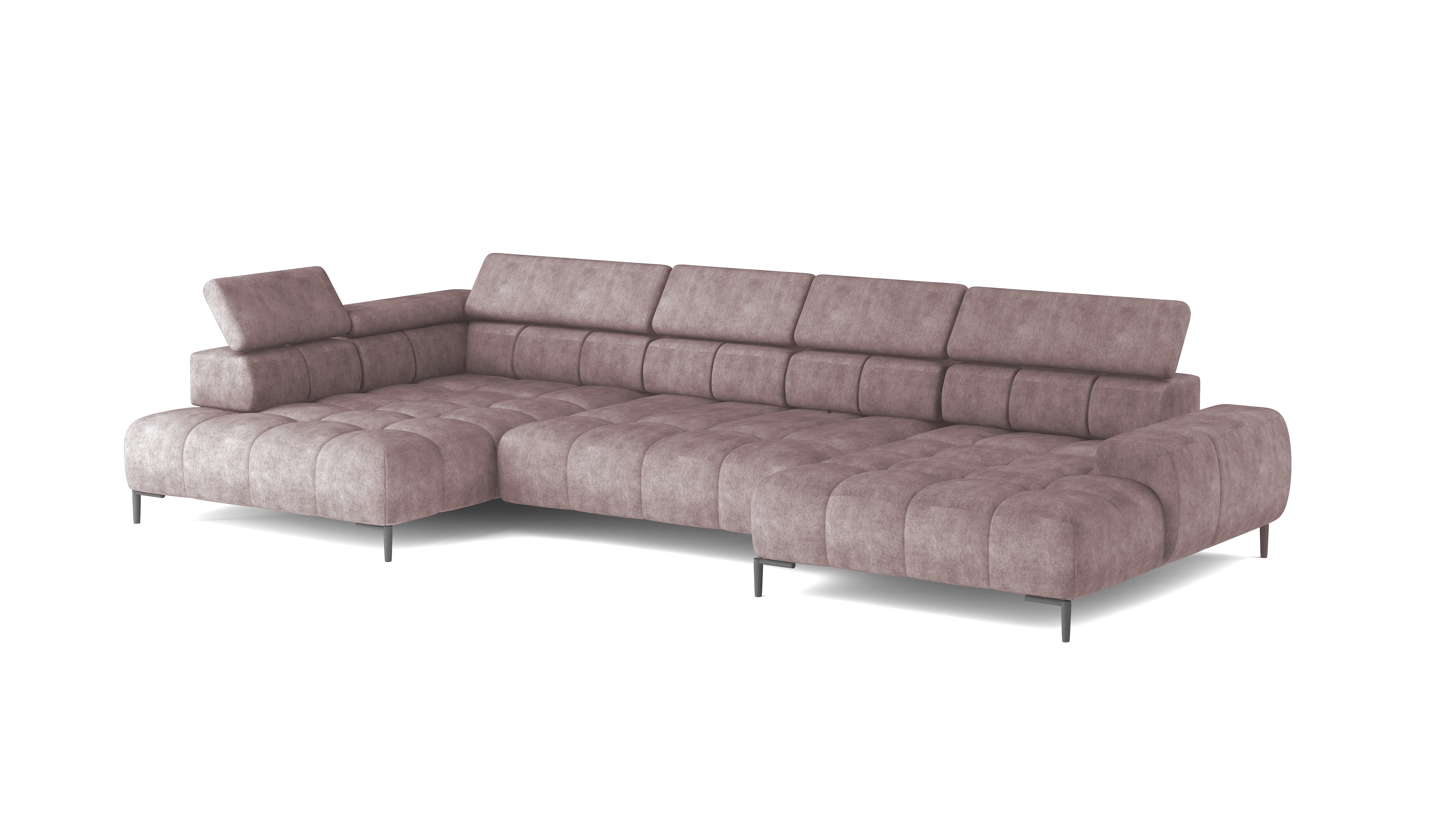 Dodatkowo narożnik wyposażony jest w przesuwne oparcie oraz 6 regulowanych zagłówków z możliwością blokady w dowolnej pozycji.