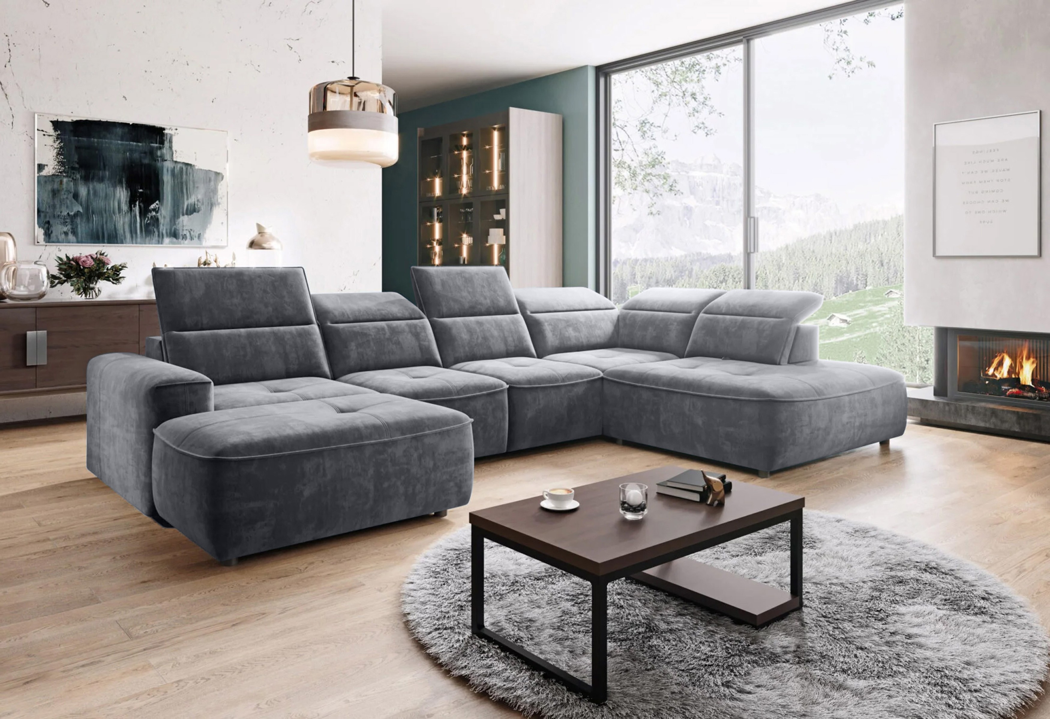 Minimalistyczna forma i subtelne pikowania nadają narożnikowi wyjątkowego stylu, a regulowane zagłówki oraz elektryczna funkcja spania zapewniają wygodę użytkowania na co dzień.