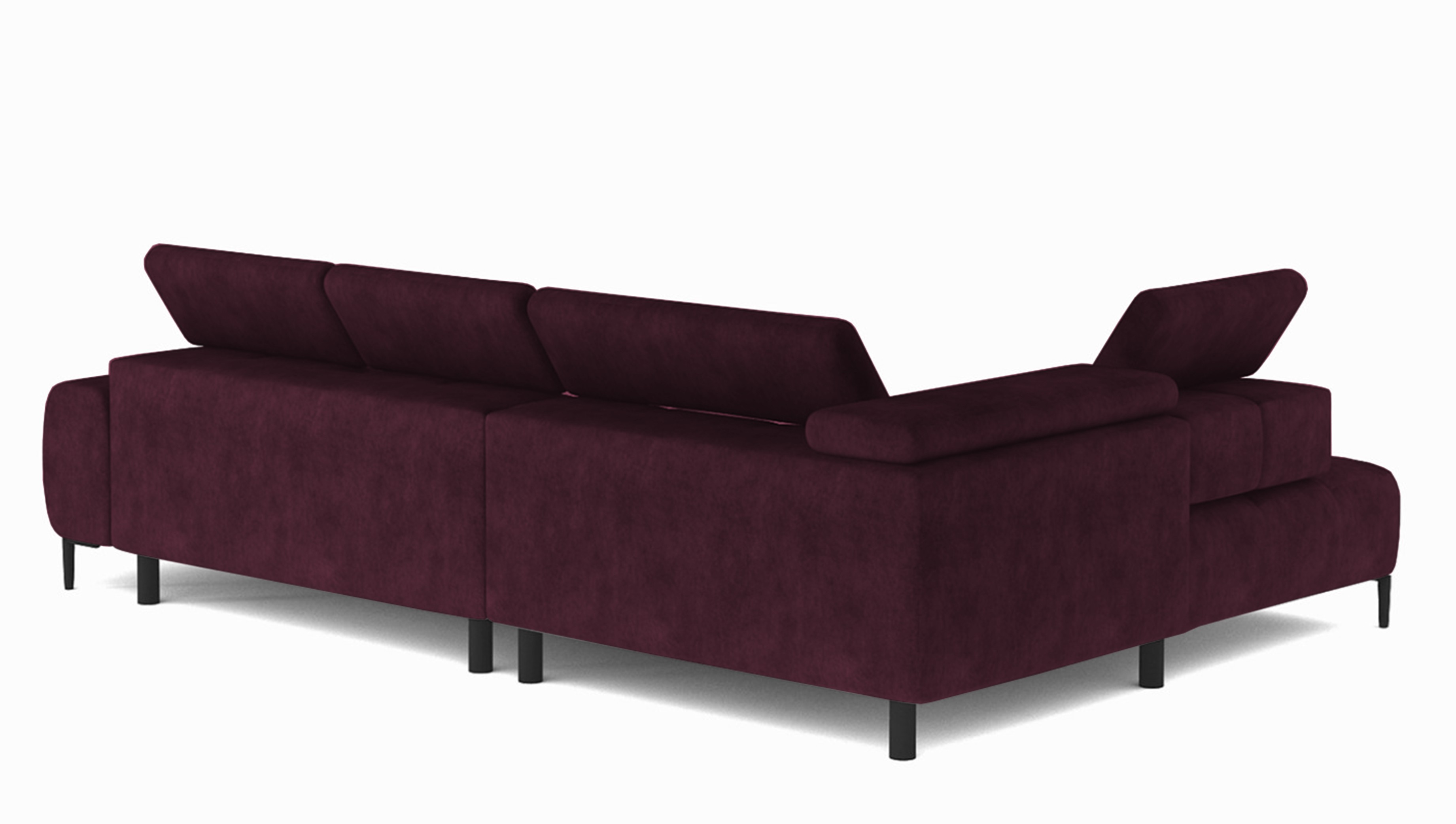 Dodatkowo narożnik wyposażony jest w przesuwne oparcie oraz 6 regulowanych zagłówków z możliwością blokady w dowolnej pozycji.