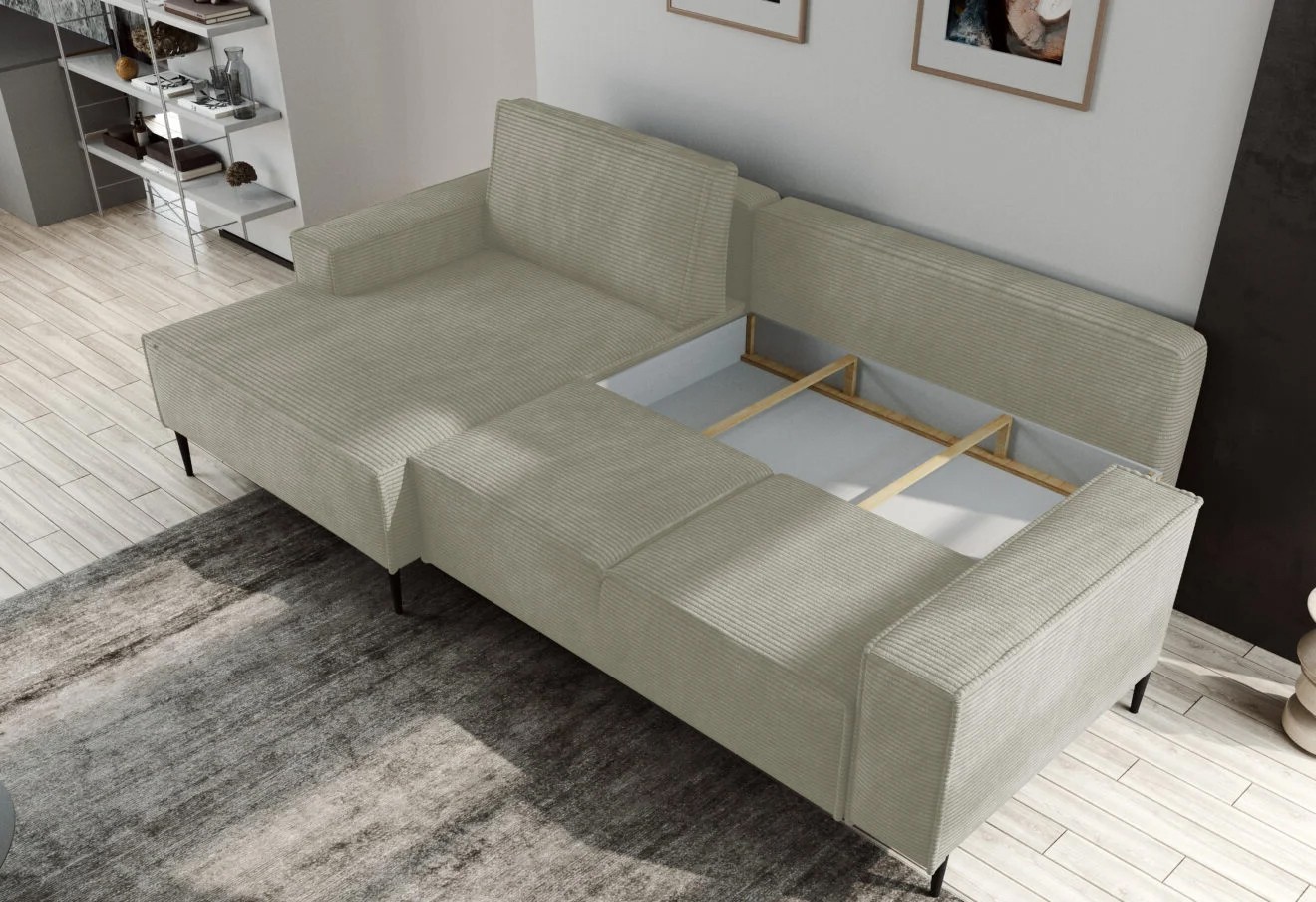 Narożnik MATANO układ L Prawostronny z funkcją spania i pojemnikiem w tkaninie POSO WERSAL