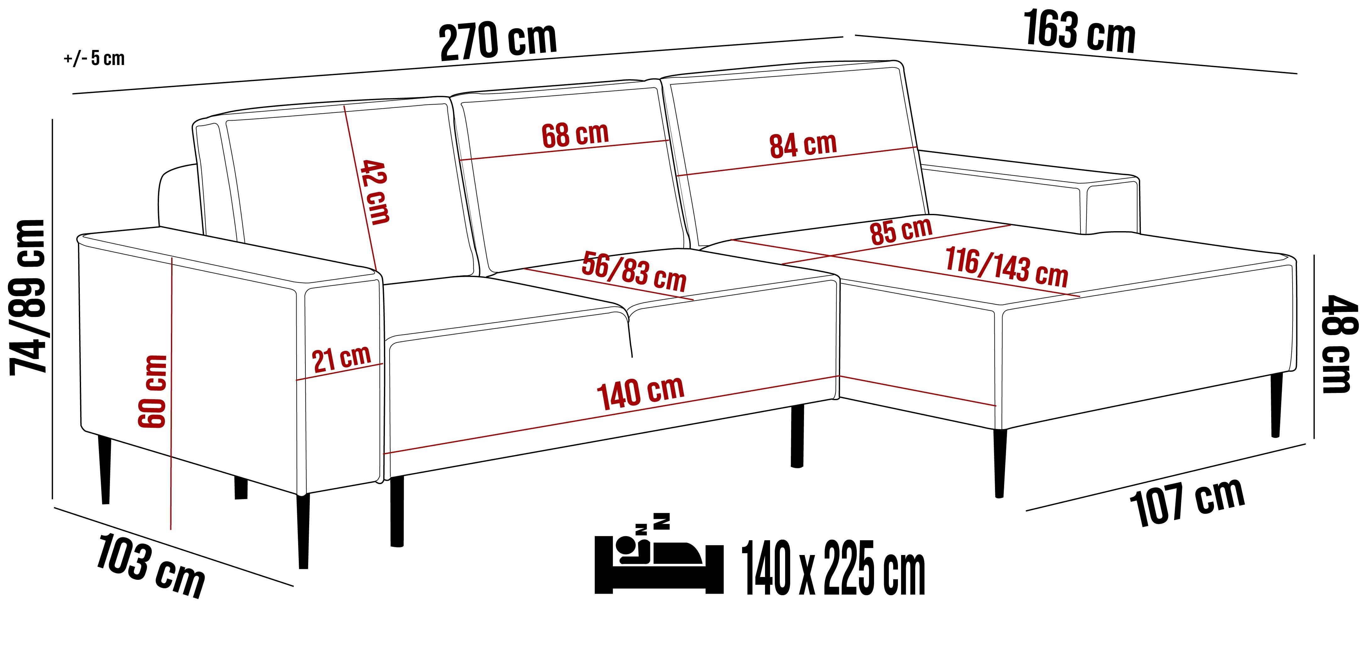270x163x74/89 cm