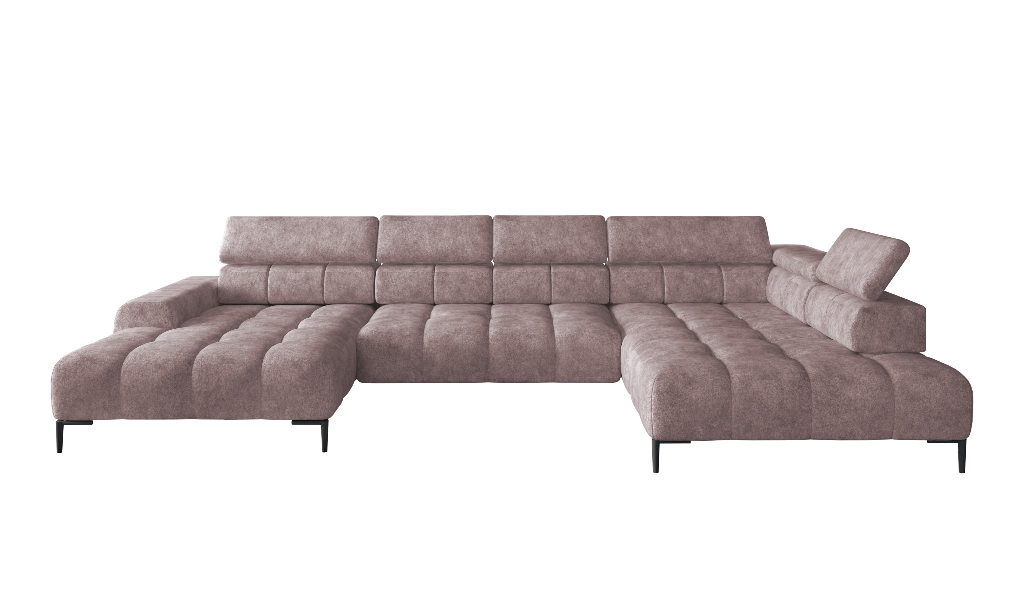Dodatkowo narożnik wyposażony jest w przesuwne oparcie oraz 6 regulowanych zagłówków z możliwością blokady w dowolnej pozycji.