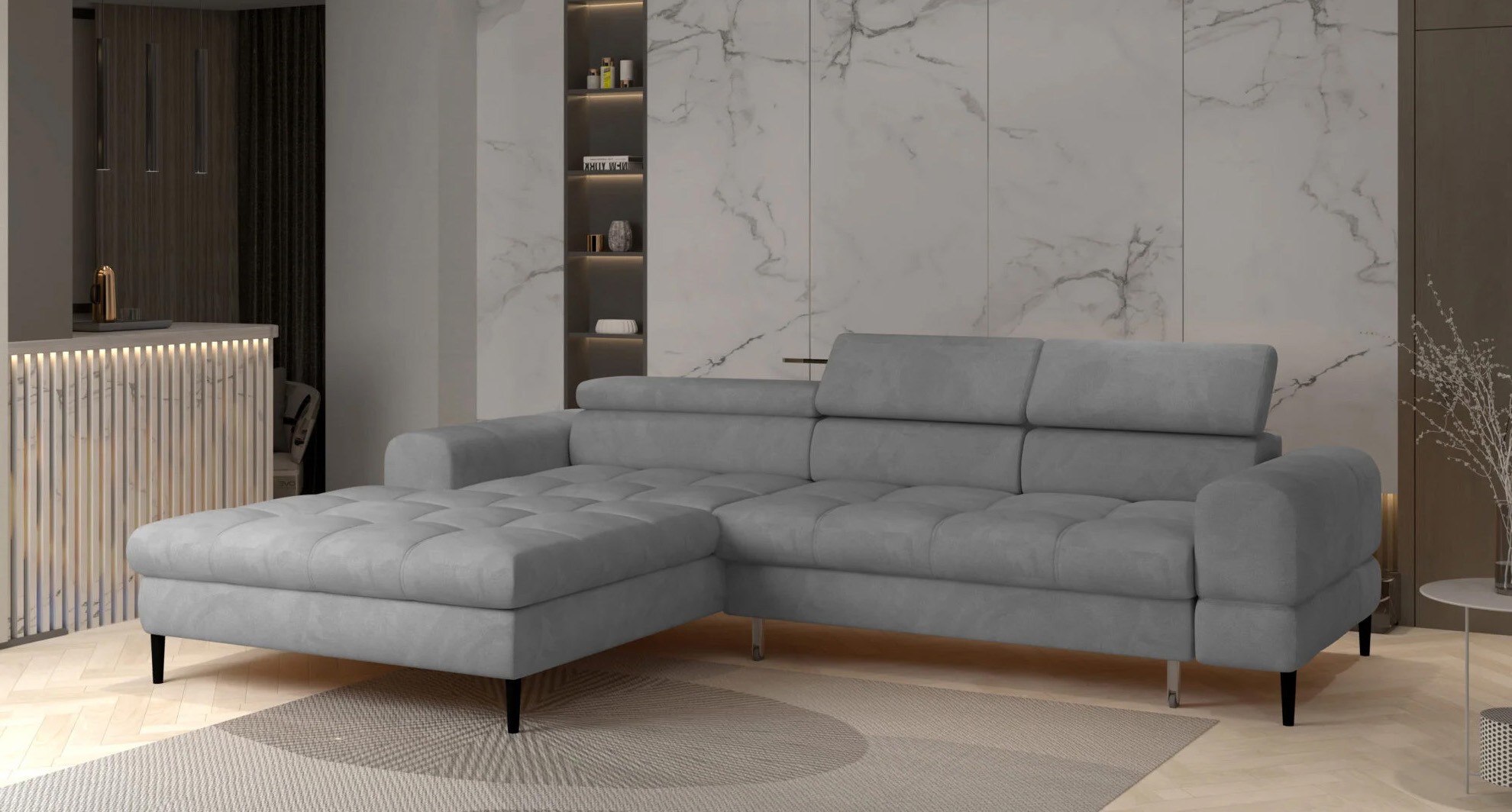 Dodatkowym atutem są regulowane zagłówki, które pozwalają dopasować wysokość i kąt podparcia do indywidualnych preferencji użytkownika. Dzięki nim narożnik zapewnia maksymalny komfort podczas relaksu, czytania czy oglądania telewizji.