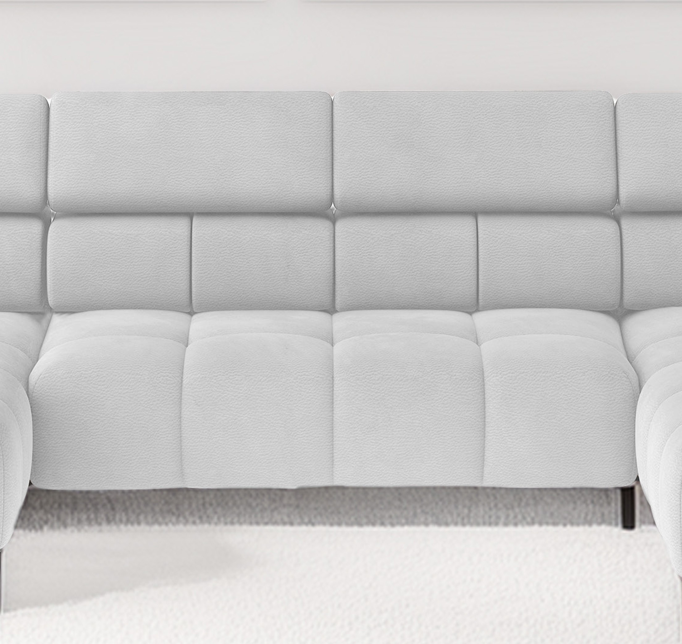 Dodatkowo narożnik wyposażony jest w przesuwne oparcie oraz 6 regulowanych zagłówków z możliwością blokady w dowolnej pozycji.