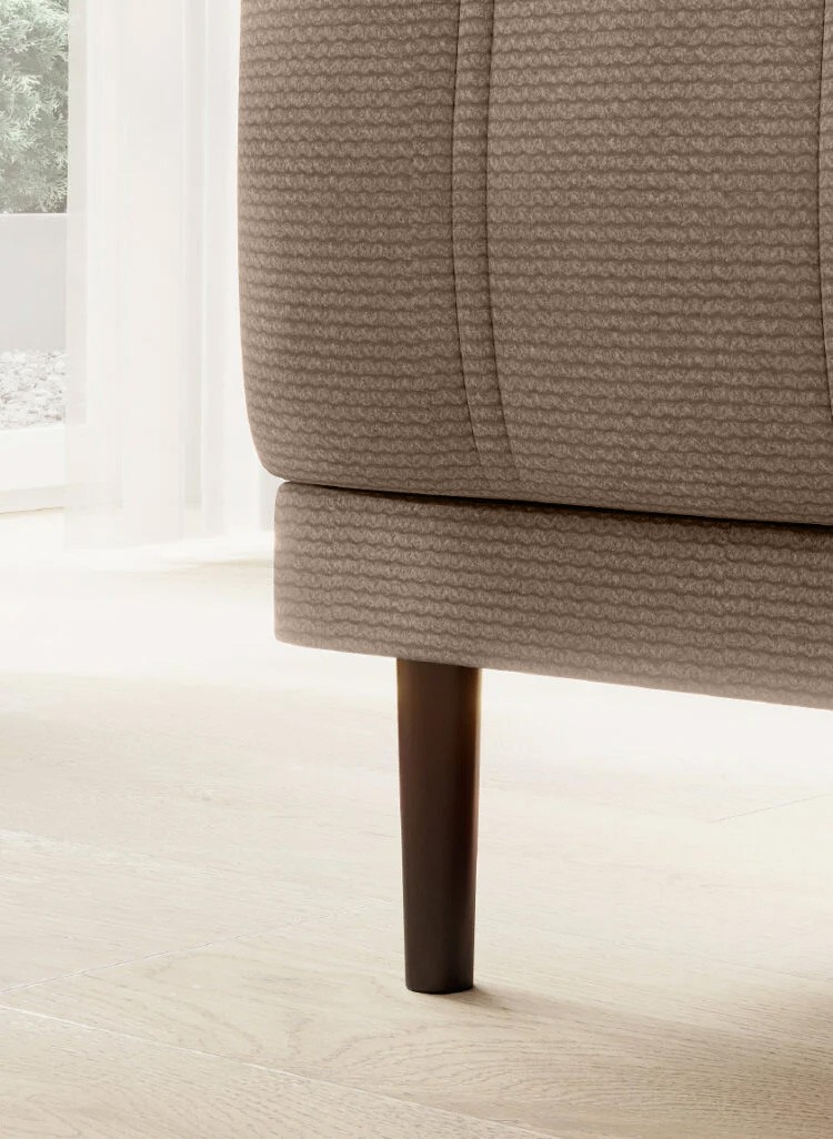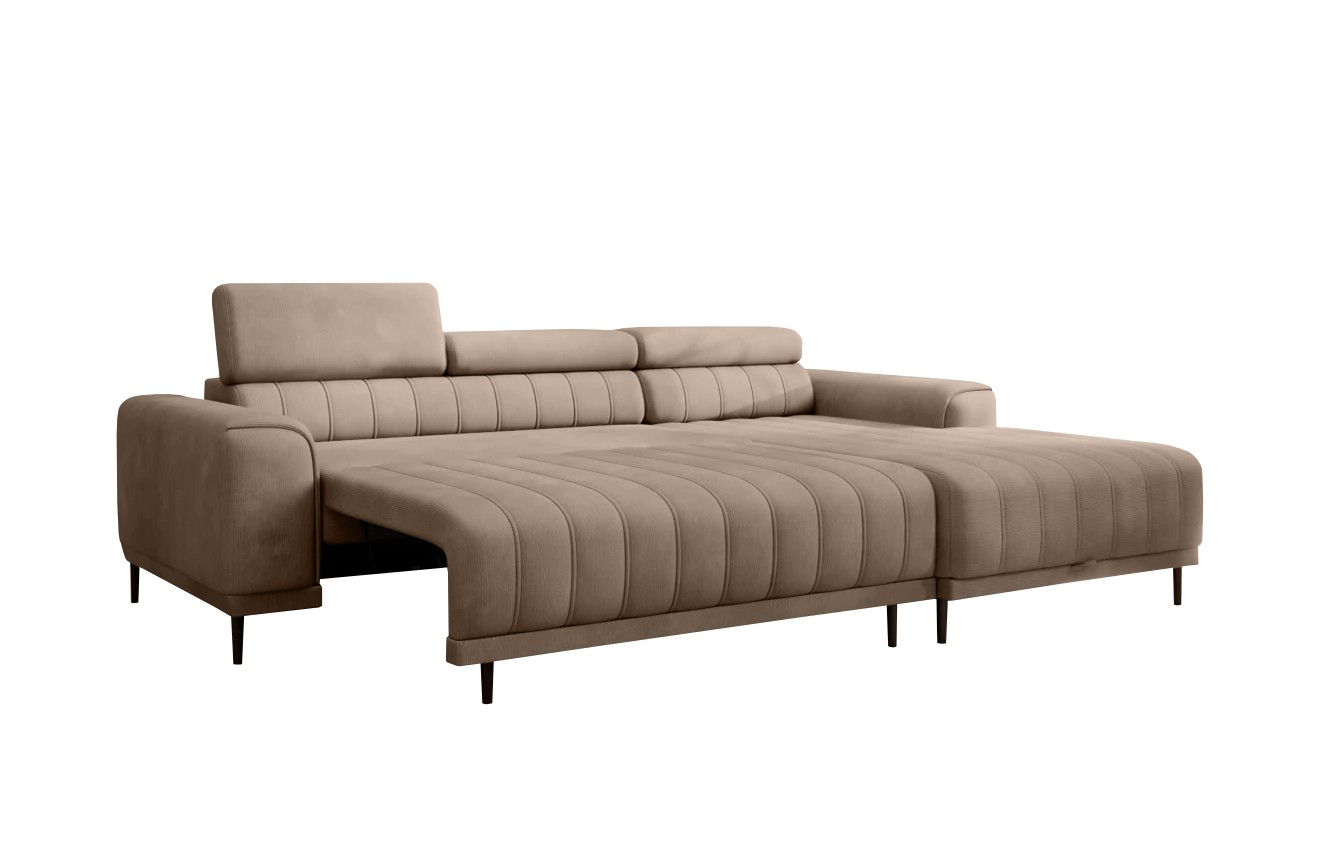Pikowane siedzisko nadaje narożnikowi nowoczesnego charakteru, a wysokie metalowe nóżki w stylu loftowym dodają mu lekkości i elegancji.