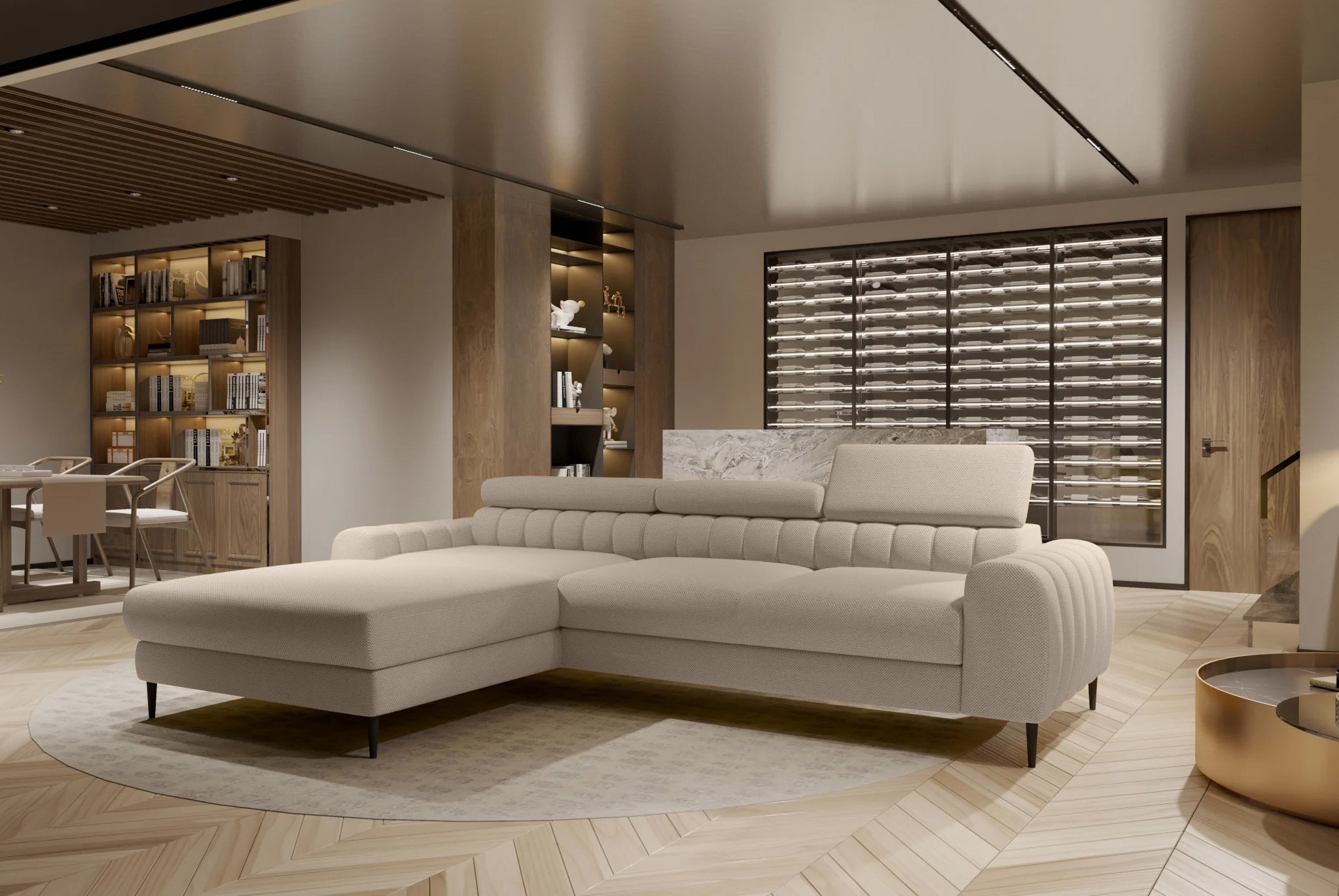 Narożnik NAVAS S został stworzony z myślą o osobach ceniących elegancję i funkcjonalność w nowoczesnych wnętrzach.