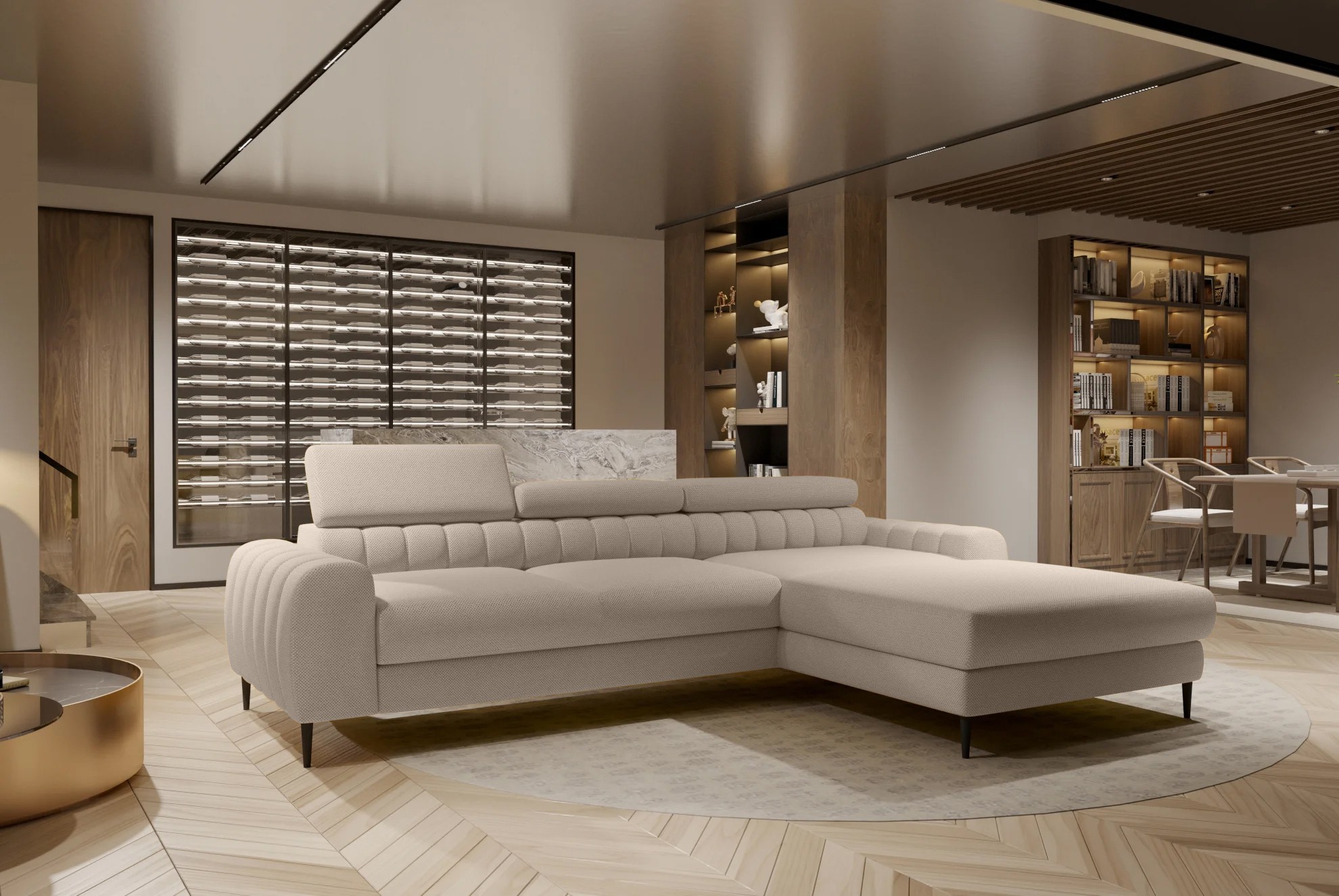 Narożnik NAVAS S został stworzony z myślą o osobach ceniących elegancję i funkcjonalność w nowoczesnych wnętrzach.
