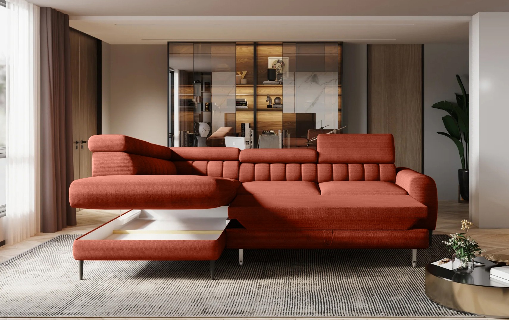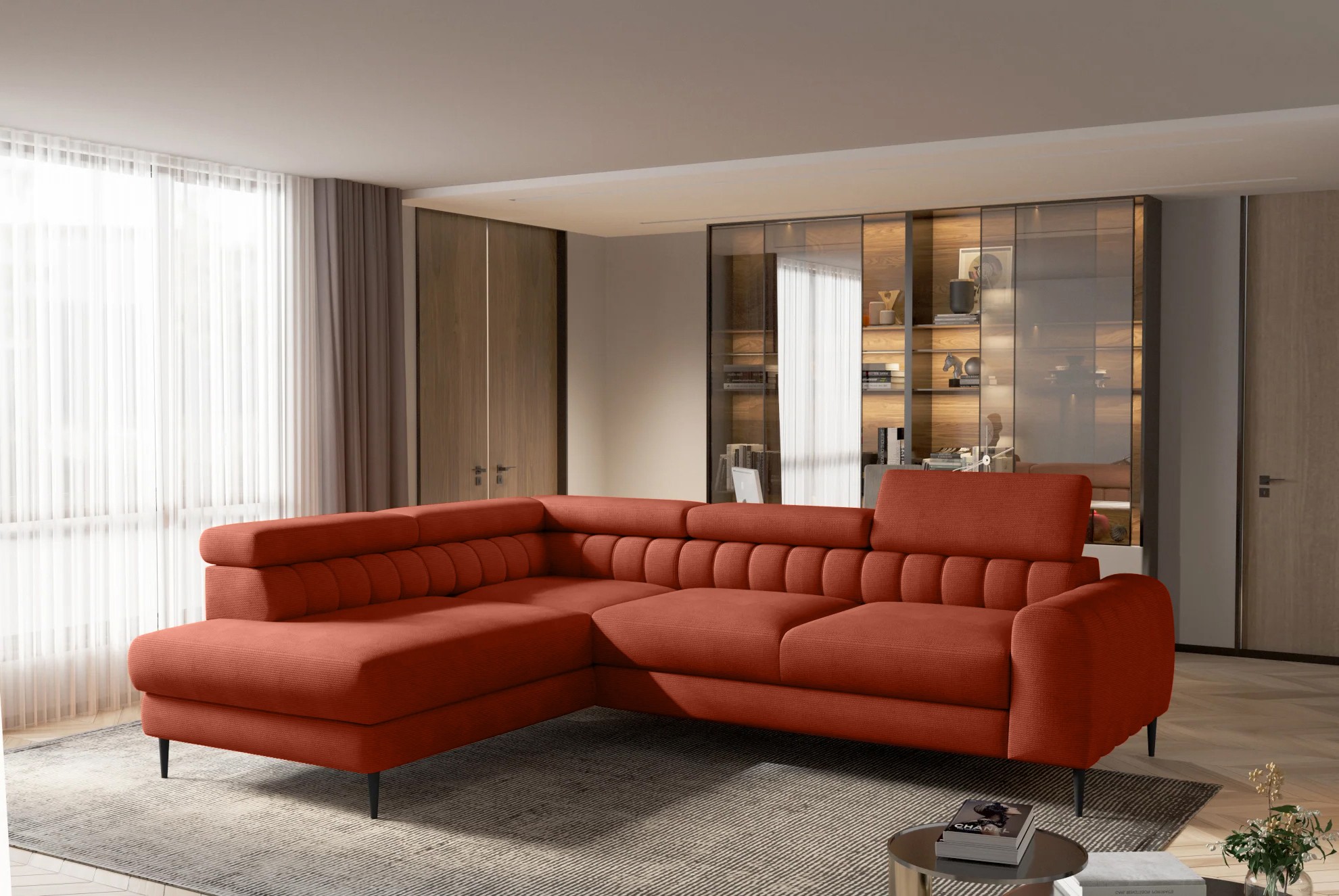 Narożnik NAVAS L został stworzony z myślą o osobach ceniących elegancję i funkcjonalność w nowoczesnych wnętrzach.