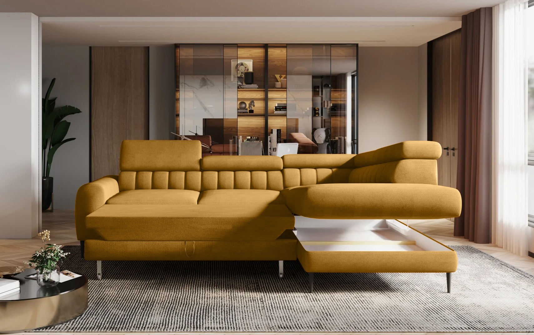 Narożnik NAVAS L został stworzony z myślą o osobach ceniących elegancję i funkcjonalność w nowoczesnych wnętrzach.