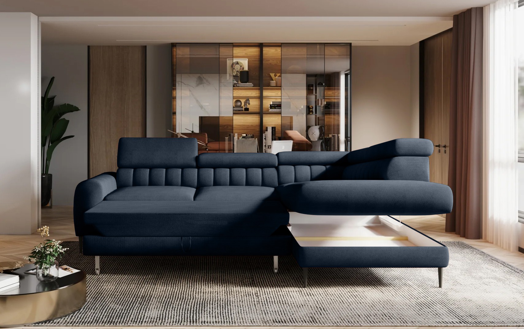 Narożnik NAVAS L został stworzony z myślą o osobach ceniących elegancję i funkcjonalność w nowoczesnych wnętrzach.