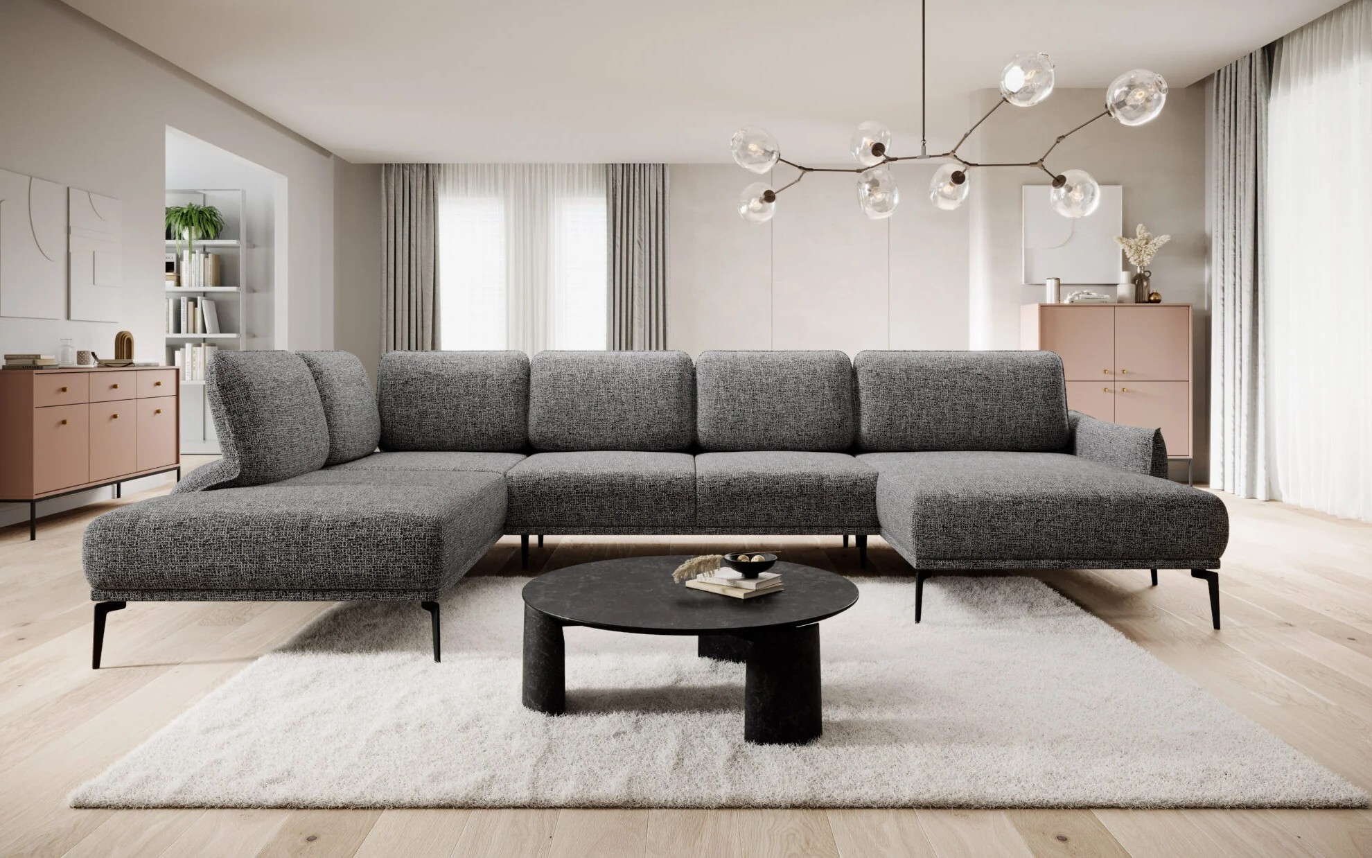 Narożnik STORM XL to zgrabny, nowoczesny i funkcjonalny narożnik do salonu, który doskonale łączy elegancką stylistykę z wysokim komfortem użytkowania. Jego smukła forma oraz dopracowane detale sprawiają, że świetnie komponuje się z aranżacjami w stylu nowoczesnym, minimalistycznym i loftowym.