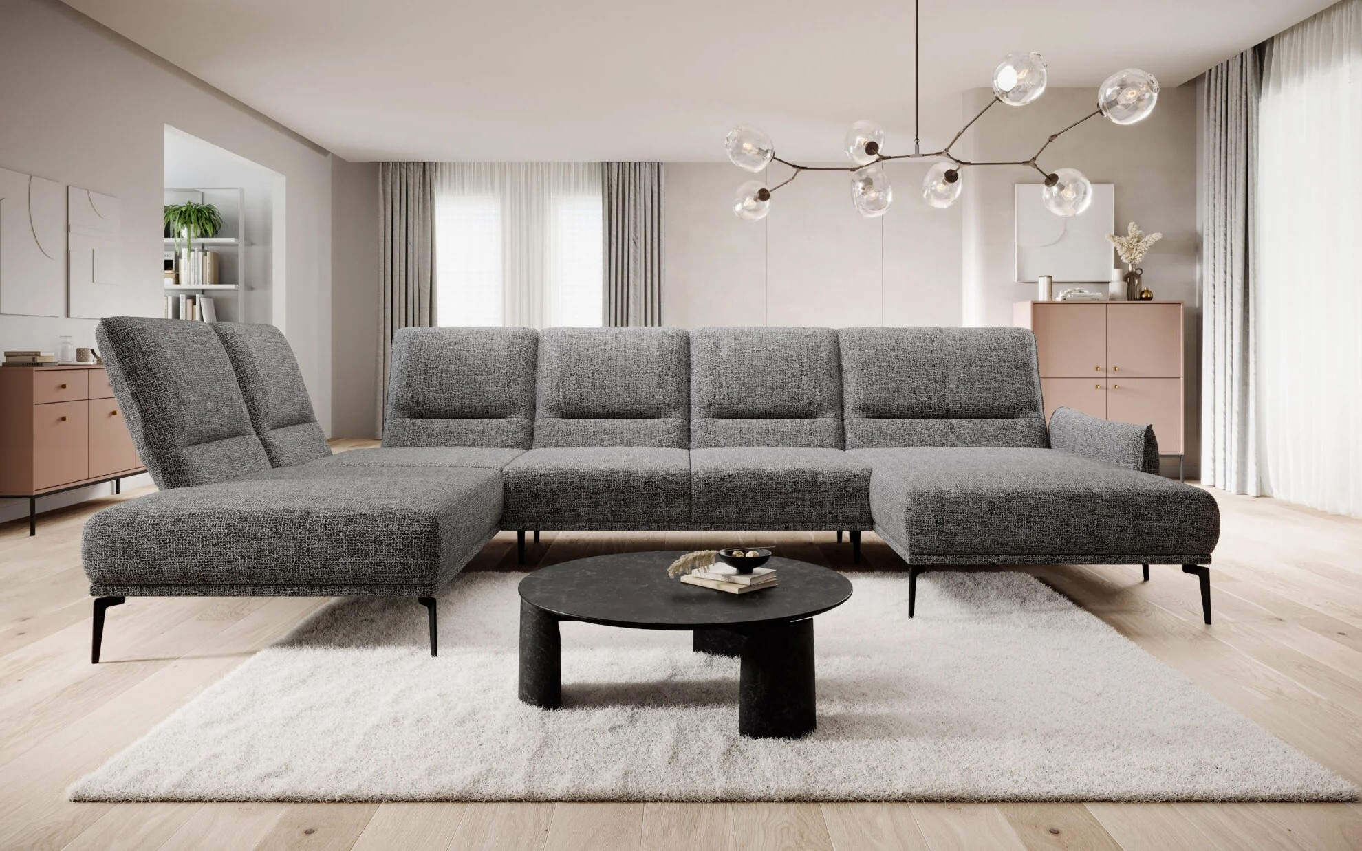Narożnik STORM XL układ U Lewostronny z funkcją regulacji oparcia i wysuwu podnóżka WERSAL